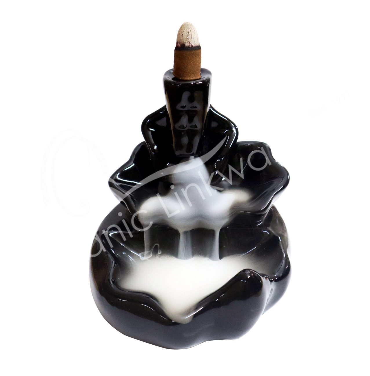 CONE BURNER – BACKFLOW BLACK CERAMIC LOTUS 4.75″H X 4.5″W