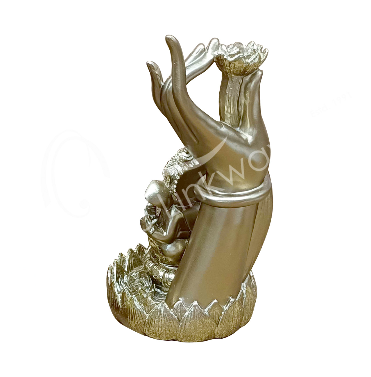 CONE BURNER – BACKFLOW BUDDHA WITH HAND, BRONZE 5.90″L X 8.75″H