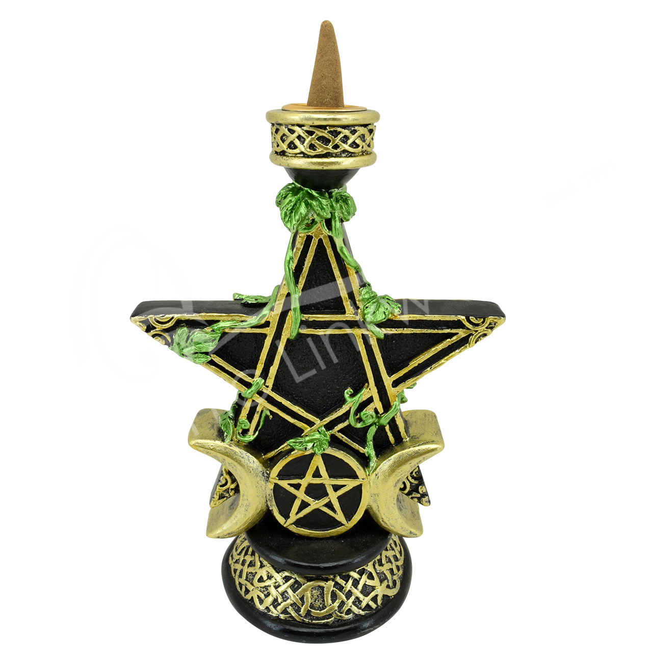 CONE INCENSE HOLDER – PENTAGRAM TRIPLE MOON 2.75″W X 6.75″H