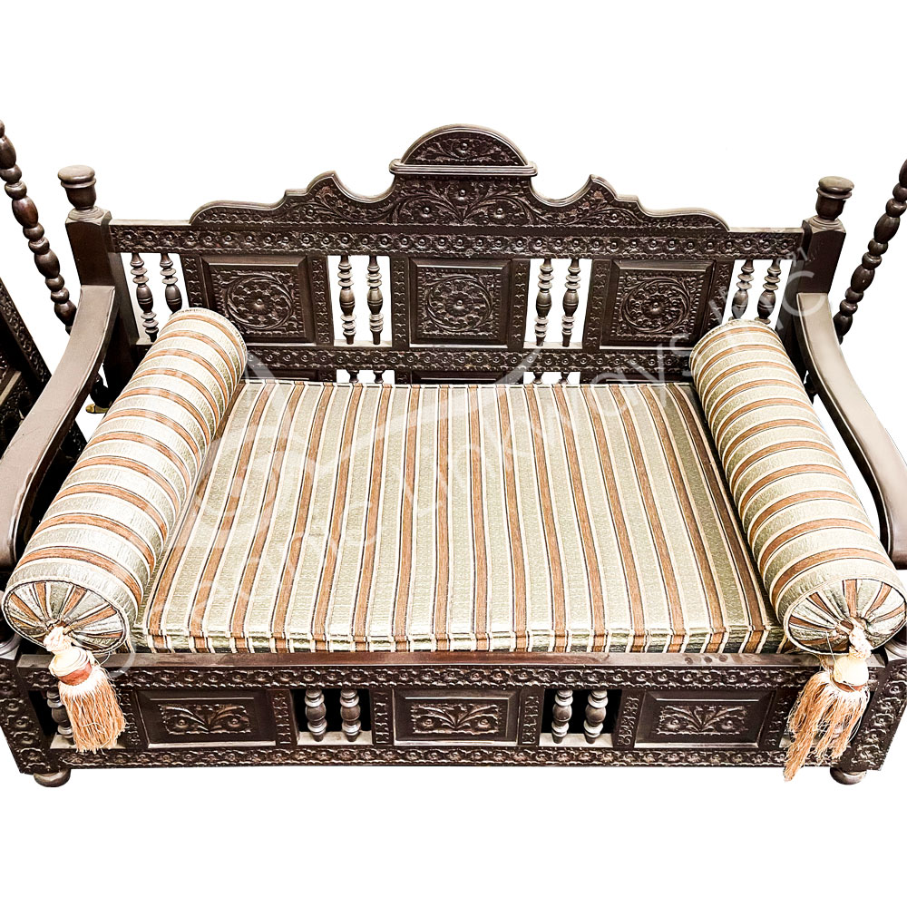 CARVED WOOD SWING WITH BROWN BENCH 75″H