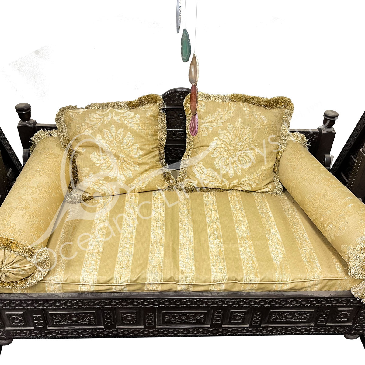 CARVED WOOD SWING WITH CREAM BENCH 64″H