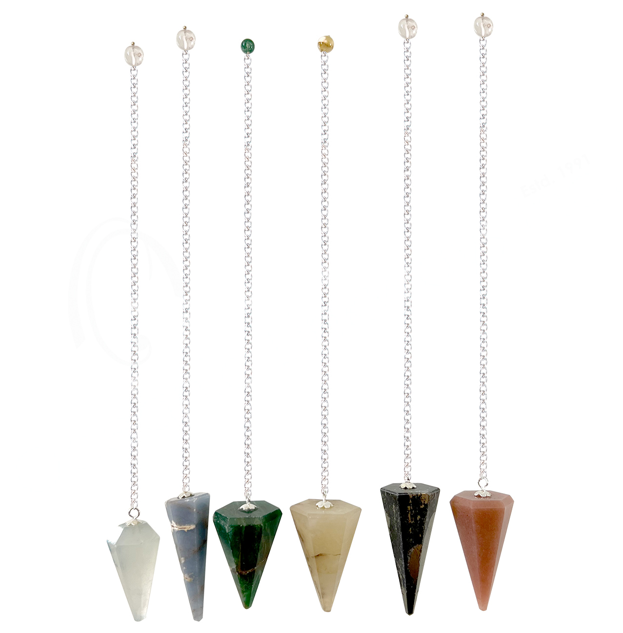 Pendulums are tools used in various spiritual, divinatory, and healing practices for dowsing, communication, and energy work. They typically consist of a weighted object, known as the pendulum bob, attached to a chain or cord. The bob can be made from various materials, including crystals, metals, wood, or glass, and may be shaped in different forms, such as spheres, points, or geometric shapes. They are commonly used for dowsing, a practice that involves using the movement of the pendulum to gain information or answers to questions. During a dowsing session, the pendulum is held steady while the user asks a question or focuses on a specific issue. They can then responds with movements, such as swinging, rotating, or vibrating, believed to indicate the answer or energy related to the question. They can also be used for divinatory purposes, similar to other forms of divination such as tarot cards or runes. Some practitioners use pendulum charts or mats, which feature symbols, numbers, or letters, to facilitate divination sessions with the pendulum. The movements are interpreted based on its interactions with the symbols or information on the chart, providing insights or guidance on various topics. Pendulums are also used in energy healing and spiritual practices to detect and balance subtle energy fields within the body or environment. Beyond their practical applications, pendulums can also be used as tools for personal growth, self-discovery, and spiritual development. Some individuals use pendulums for meditation, introspection, or accessing higher states of consciousness, while others use them for enhancing intuition, decision-making, and goal-setting. Buy Wholesale Aroma Oils, Buy Wholesale Resin Incense Jar, Purchase Wholesale Cauldrons, Purchase Wholesale Smudge Sticks, Shop Wholesale Abalone Shells, Wholesale Candles Online, Wholesale Essential Oils for Sale, Wholesale Oil Burners for Sale