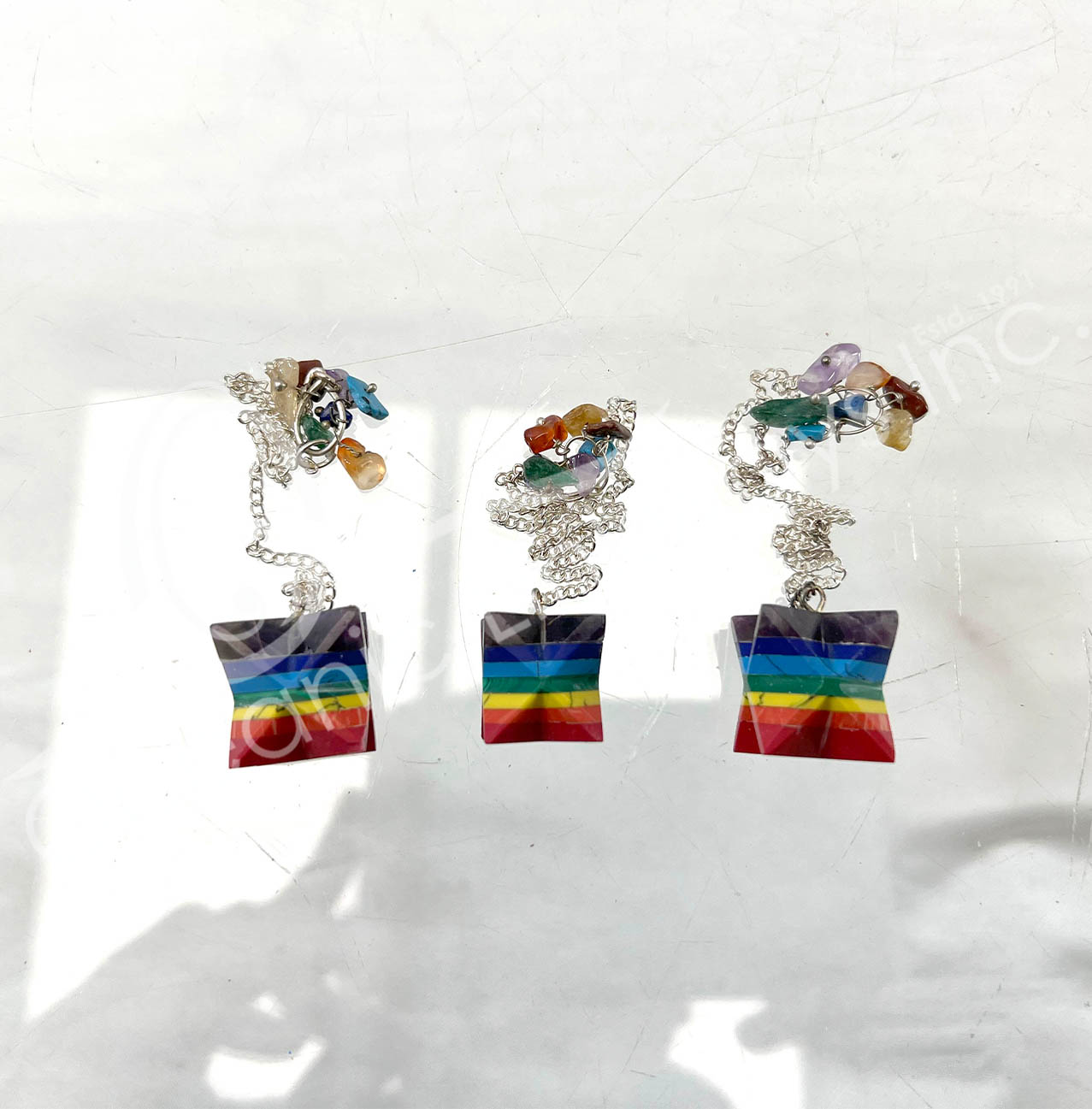 PENDULUM – PENTACLE ENGRAVED MIXED STONES CHAKRA CHAIN 10″L