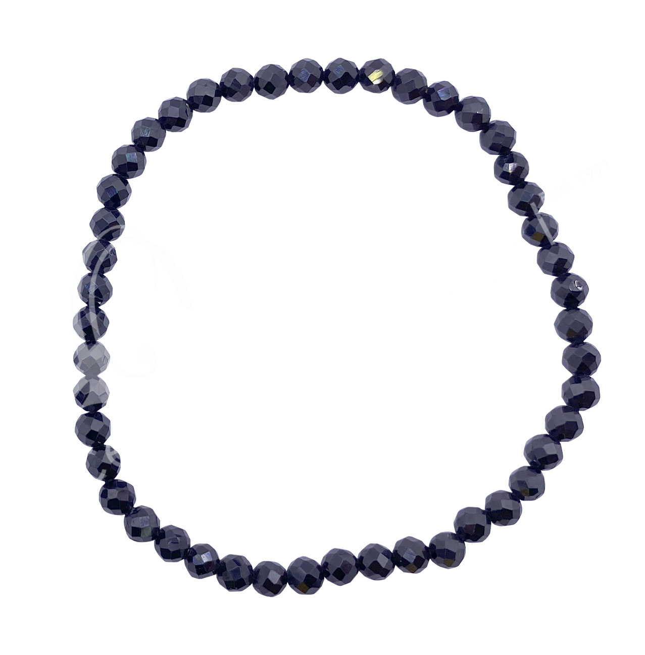 BRACELET – FACETED STONE BEADS SPINEL, BLACK (3-4 MM) 7.25-7.45″
