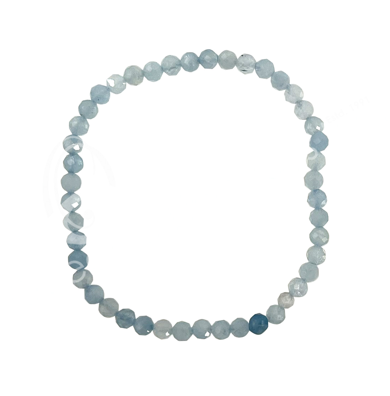 BRACELET – FACETED STONE BEADS AQUAMARINE (4 MM) 7.25-7.45″