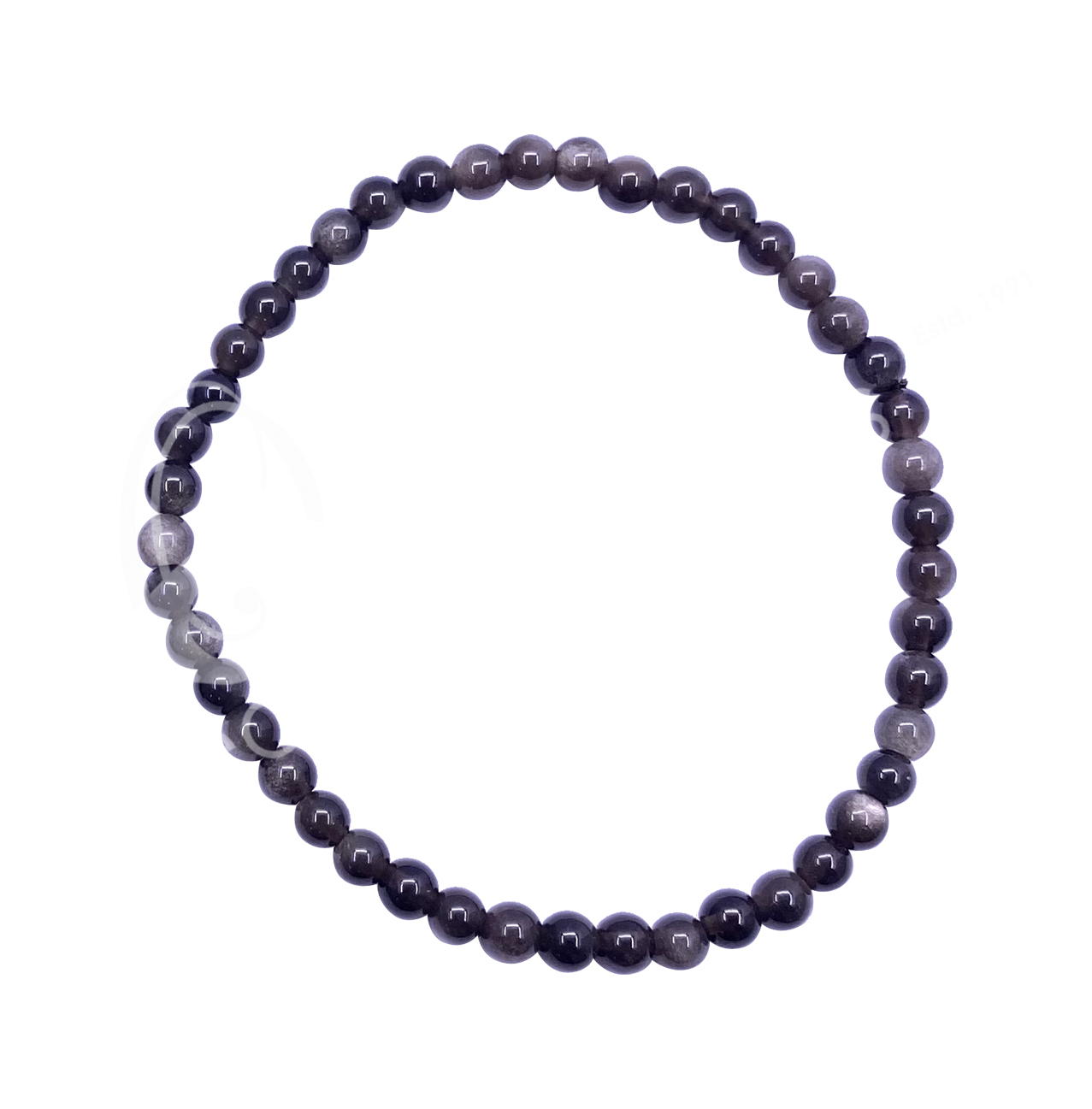 BRACELET – OBSIDIAN, SILVER & GOLDEN (4 MM) 7.25-7.45″