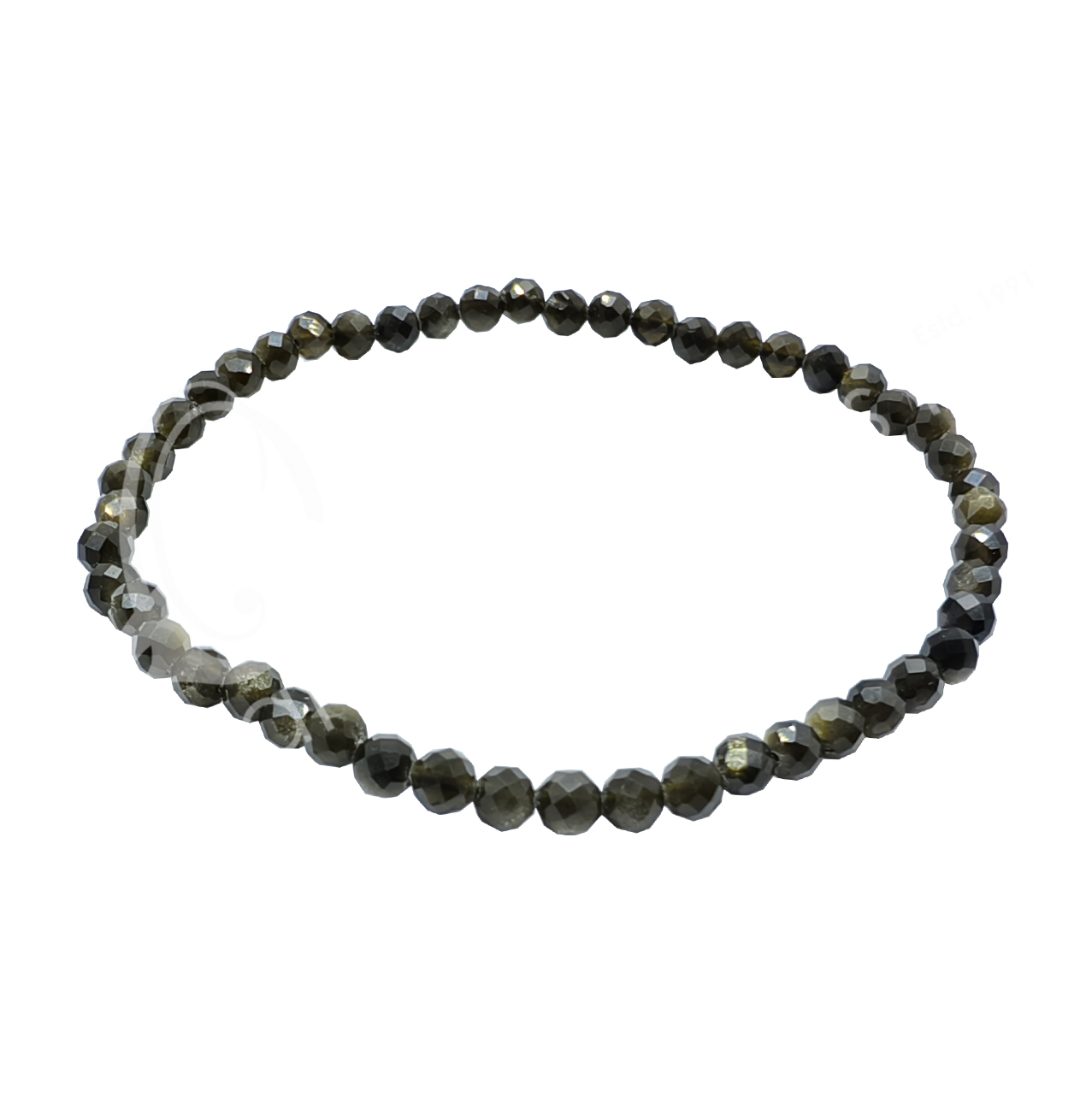 BRACELET – FACETED STONE BEADS OBSIDIAN, GOLDEN SHEEN (4 MM) 7.25-7.45″