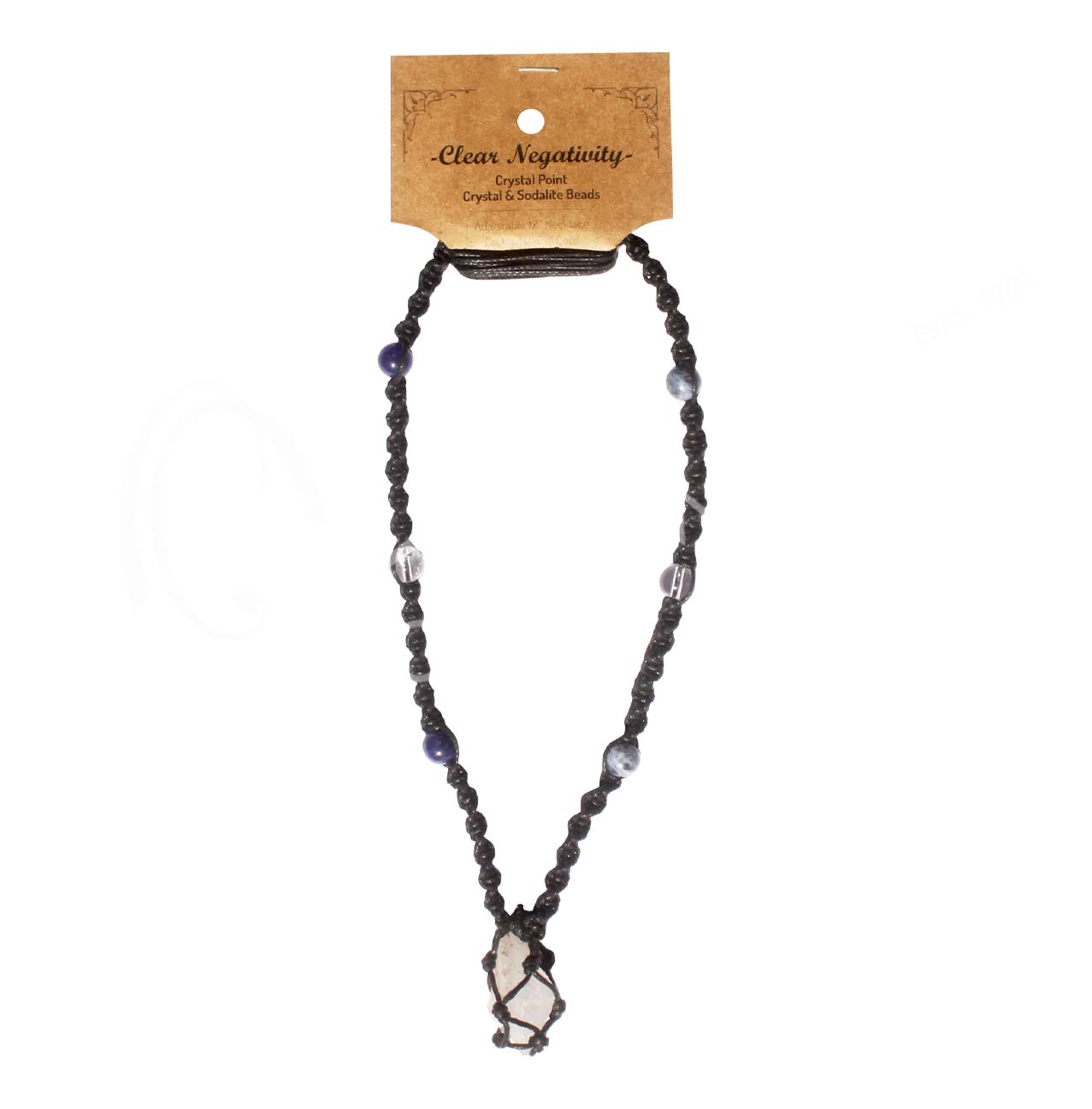 NECKLACE – IN BEADED NET CORD CRYSTAL QUARTZ/CLEAR NEGATIVITY 14-30″L