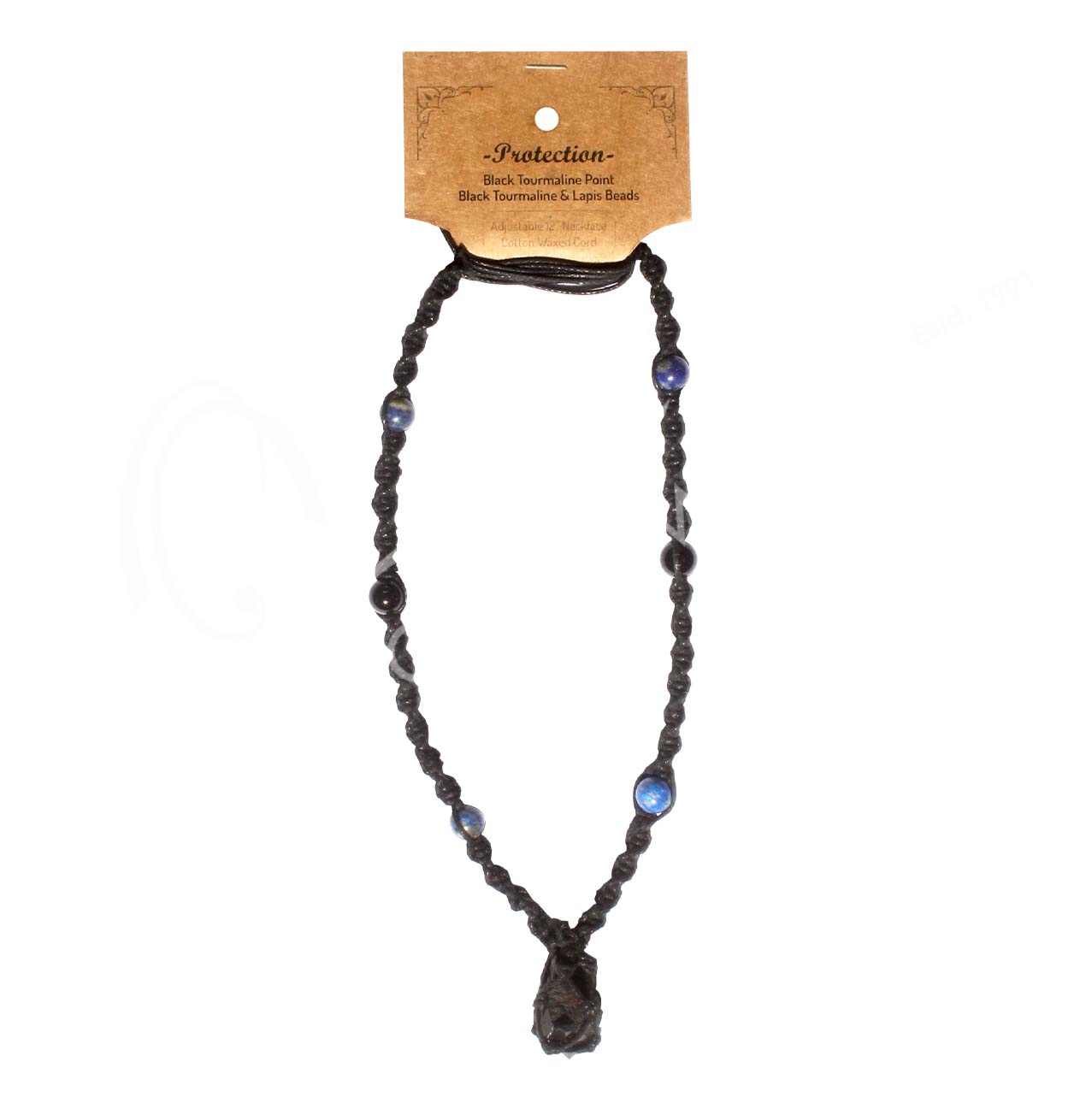NECKLACE – IN BEADED NET CORD TOURMALINE, BLACK/PROTECTION 14-30″L