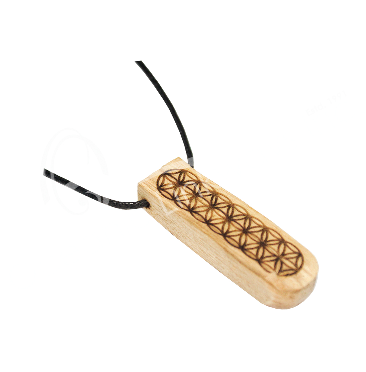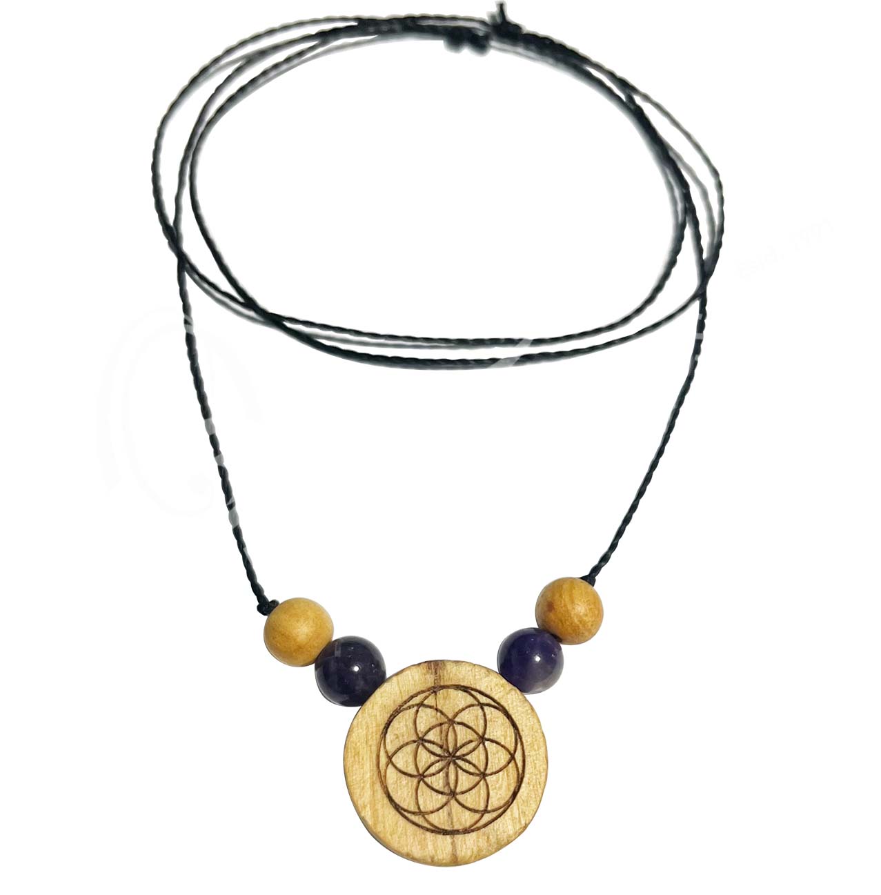 (CLOSE OUT) NECKLACE – PALO SANTO WOOD ENGRAVED FLOWER OF LIFE ADJUSTABLE (PK 3) 6-12″L