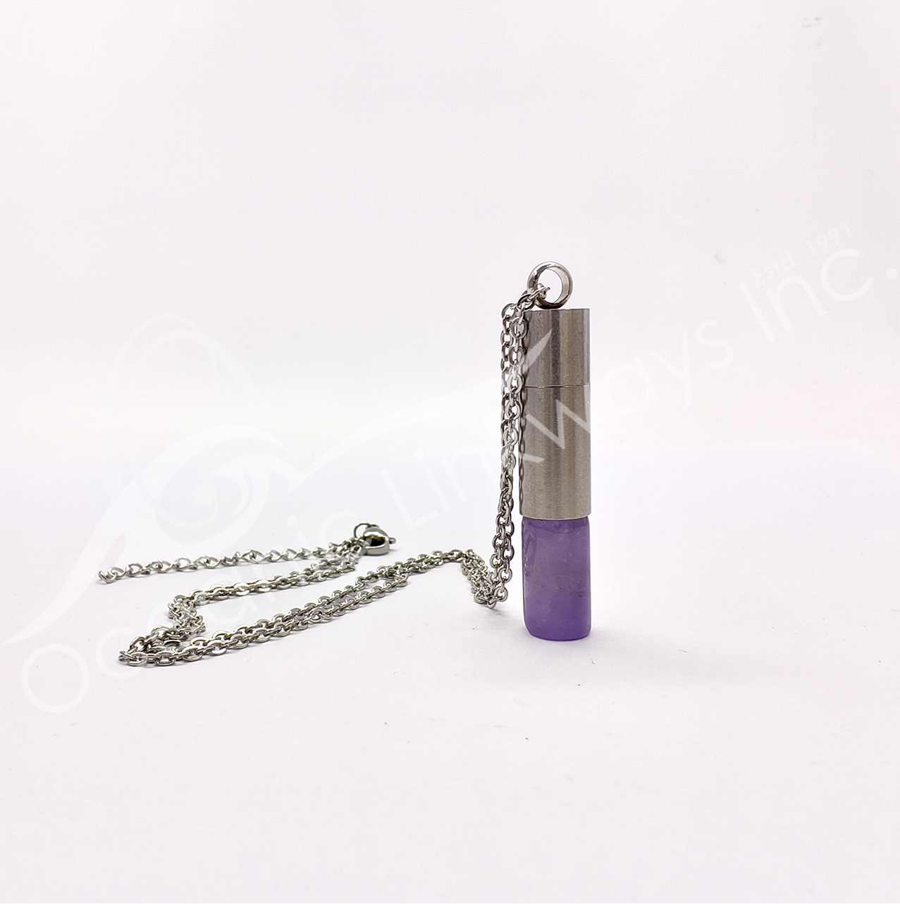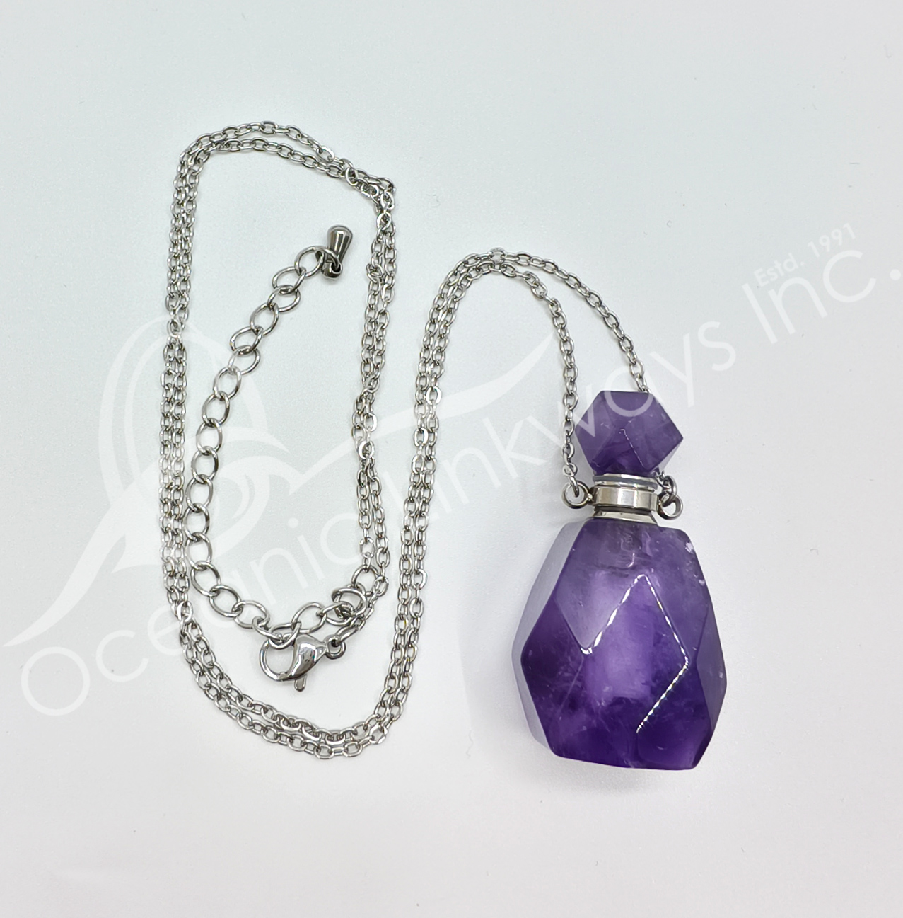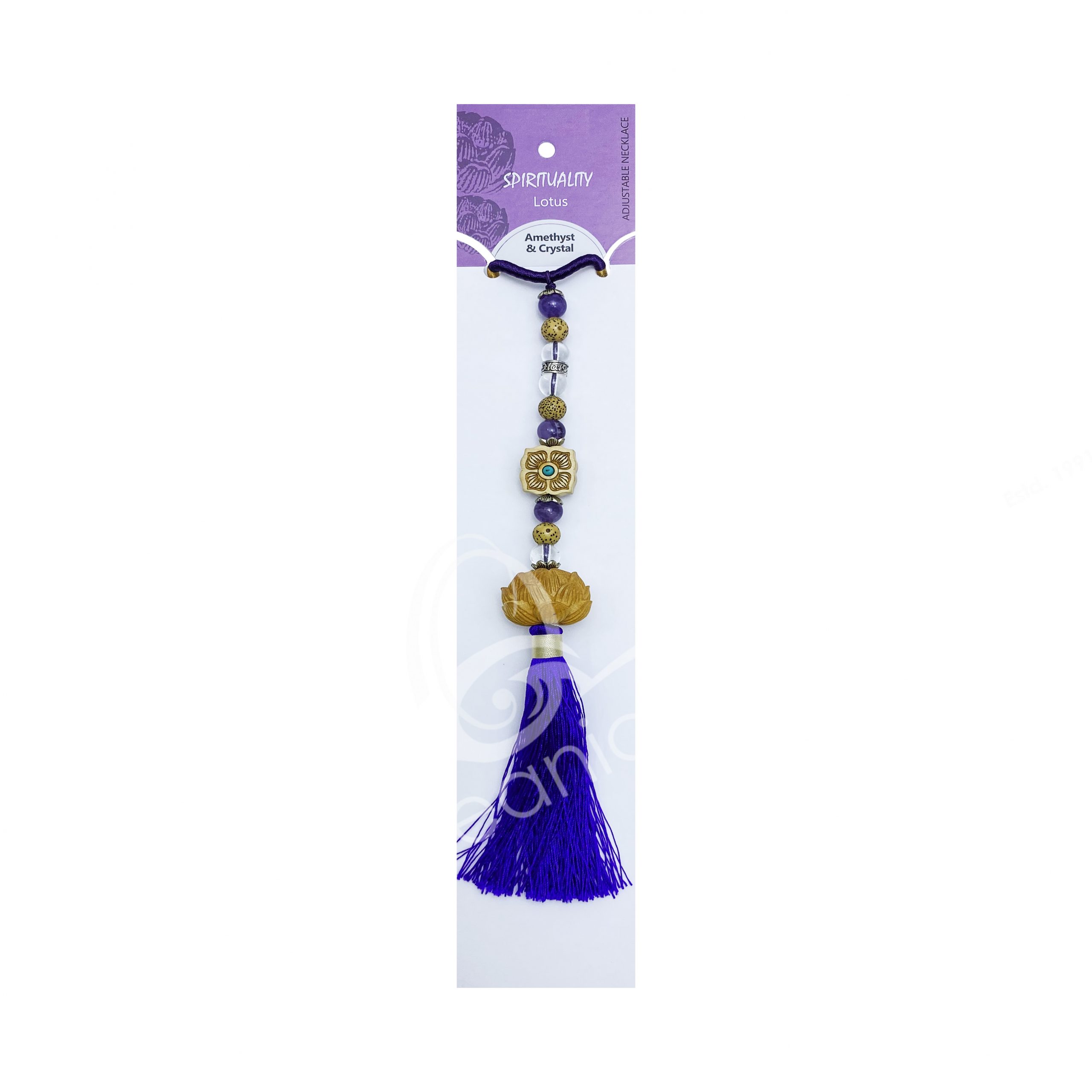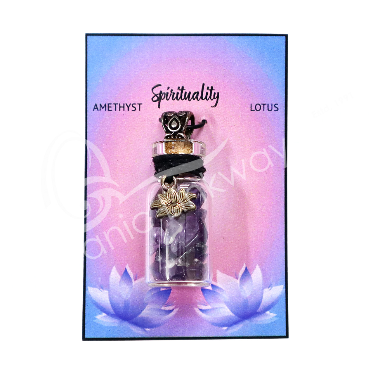 NECKLACE – CHIPS STONES IN BOTTLE AMETHYST WITH LOTUS 1.5″H