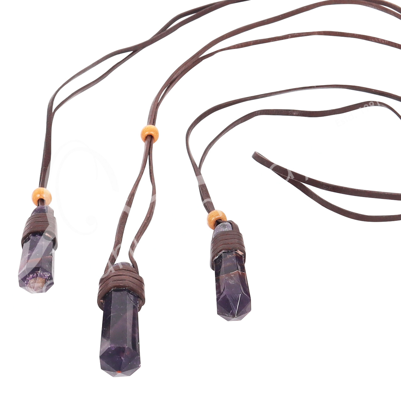 NECKLACE – POINT AMETHYST WRAPPED WITH LEATHER CORD (PK 3) 28″L