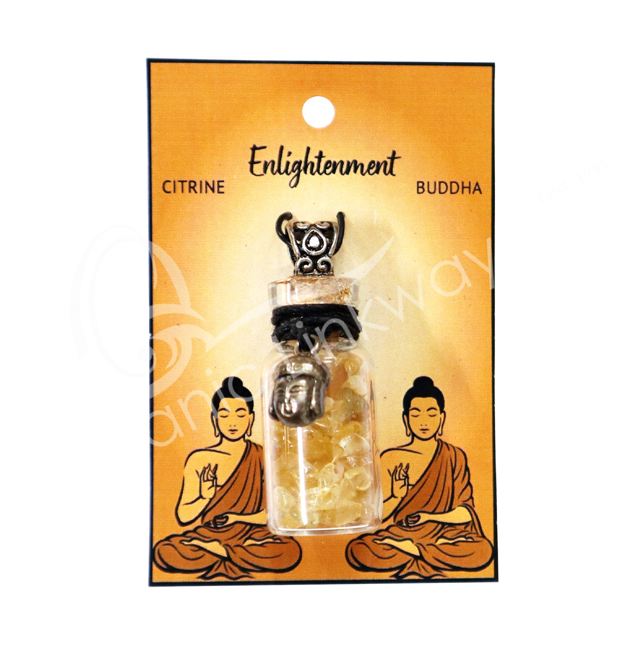 NECKLACE – CHIPS STONES IN BOTTLE CITRINE WITH BUDDHA 1.5″H