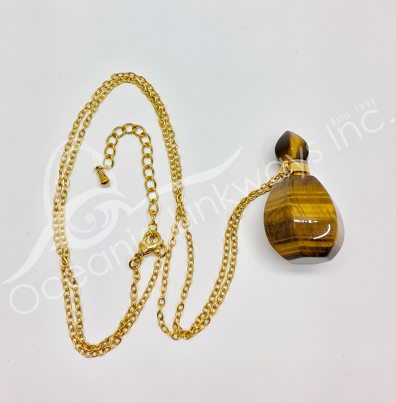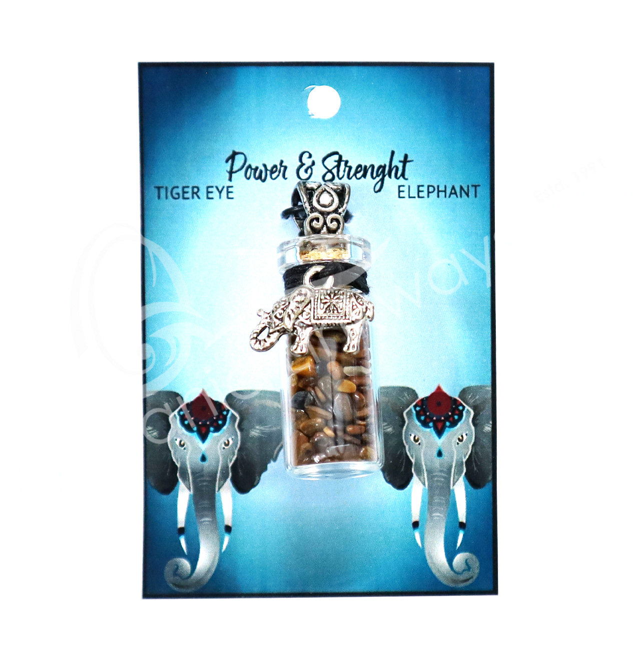 NECKLACE – CHIPS STONES IN BOTTLE TIGER EYE WITH ELEPHANT 1.5″H