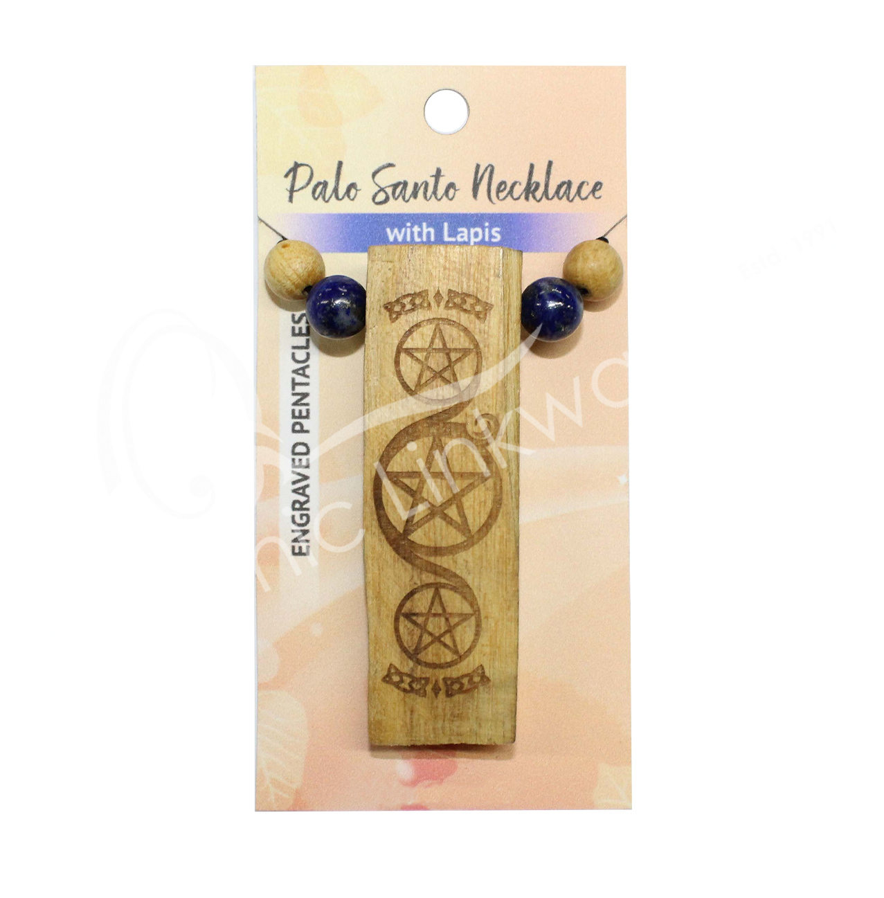 NECKLACE – PALO SANTO HALF MOON ENGRAVED MOON PHASES (PK 3) 32″L