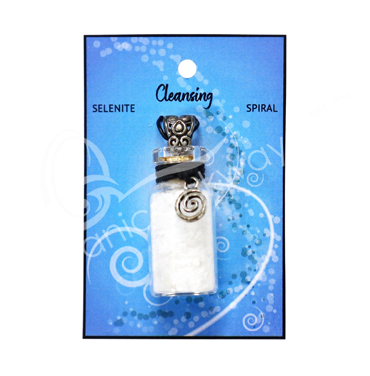 NECKLACE – CHIPS STONES IN BOTTLE SELENITE WITH SPIRAL 1.5″H