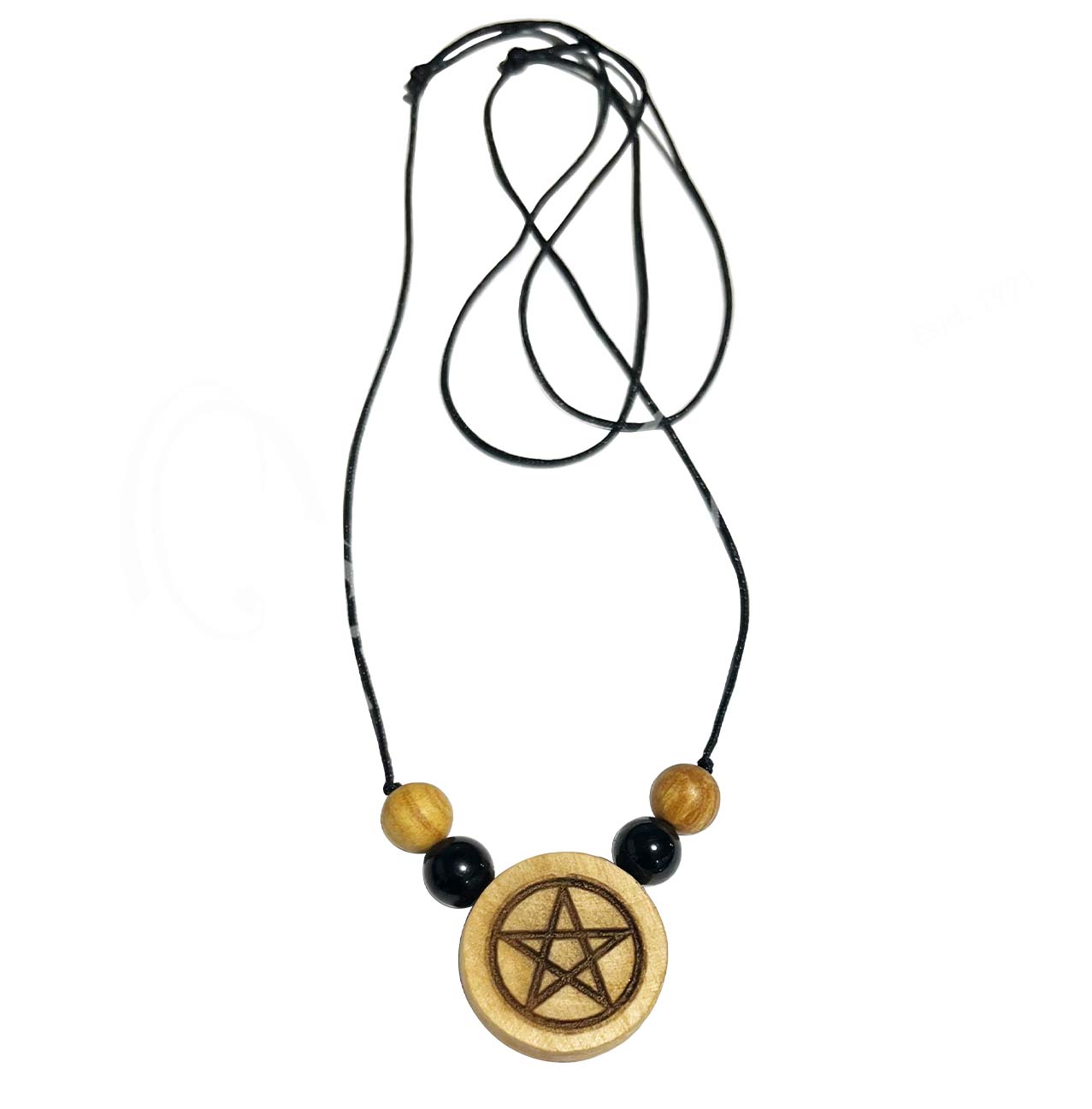 (CLOSE OUT) NECKLACE – PALO SANTO WOOD ENGRAVED NAMASTE ADJUSTABLE (PK 3) 6-12″L