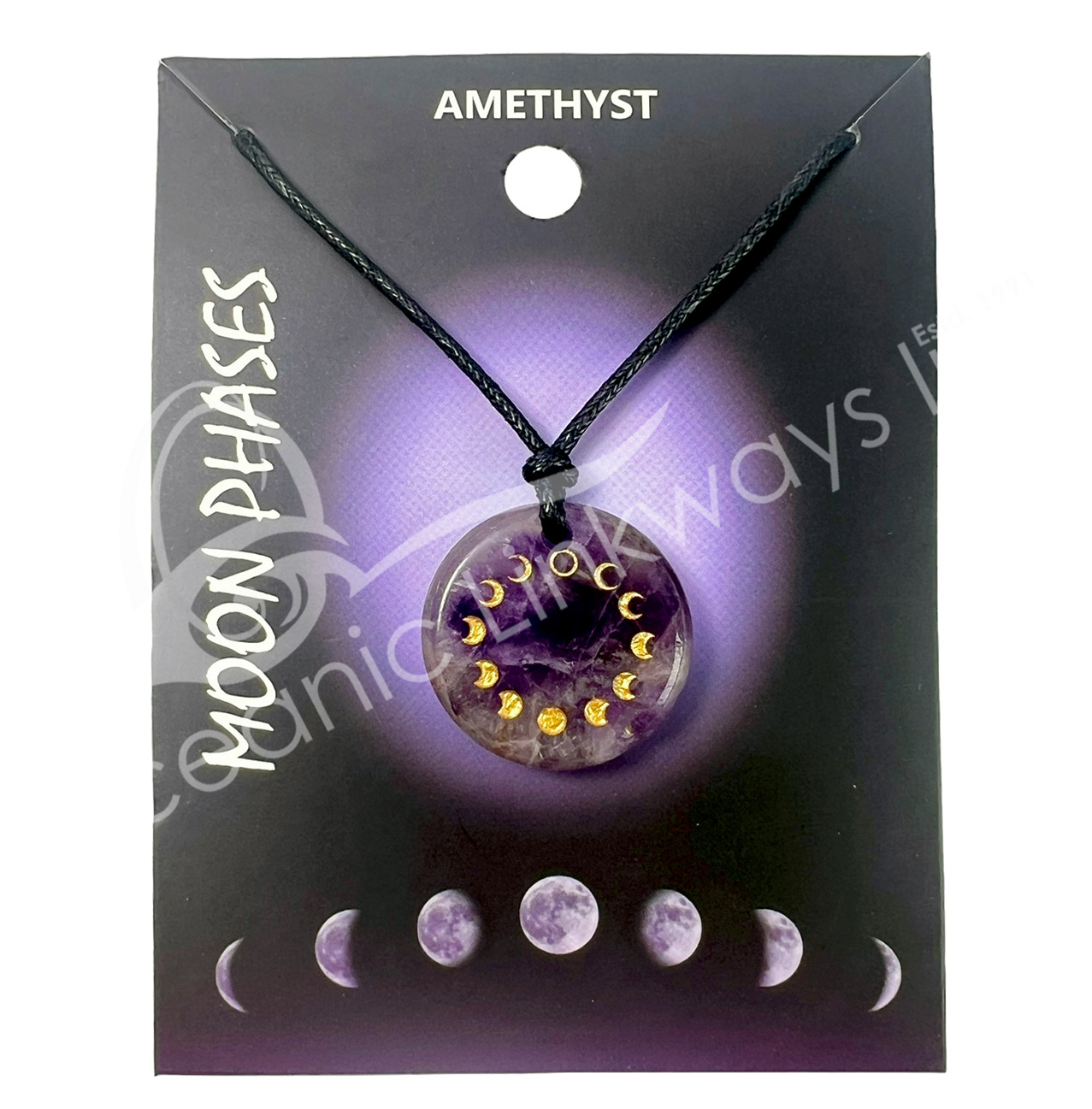 NECKLACE – MOON PHASES AMETHYST ROUND ENGRAVED 9-16.5″L