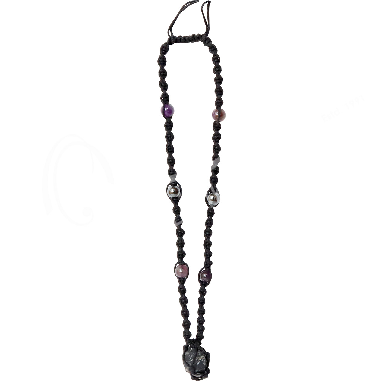 NECKLACE – IN BEADED NET CORD AMETHYST/HEALING 14-30″L