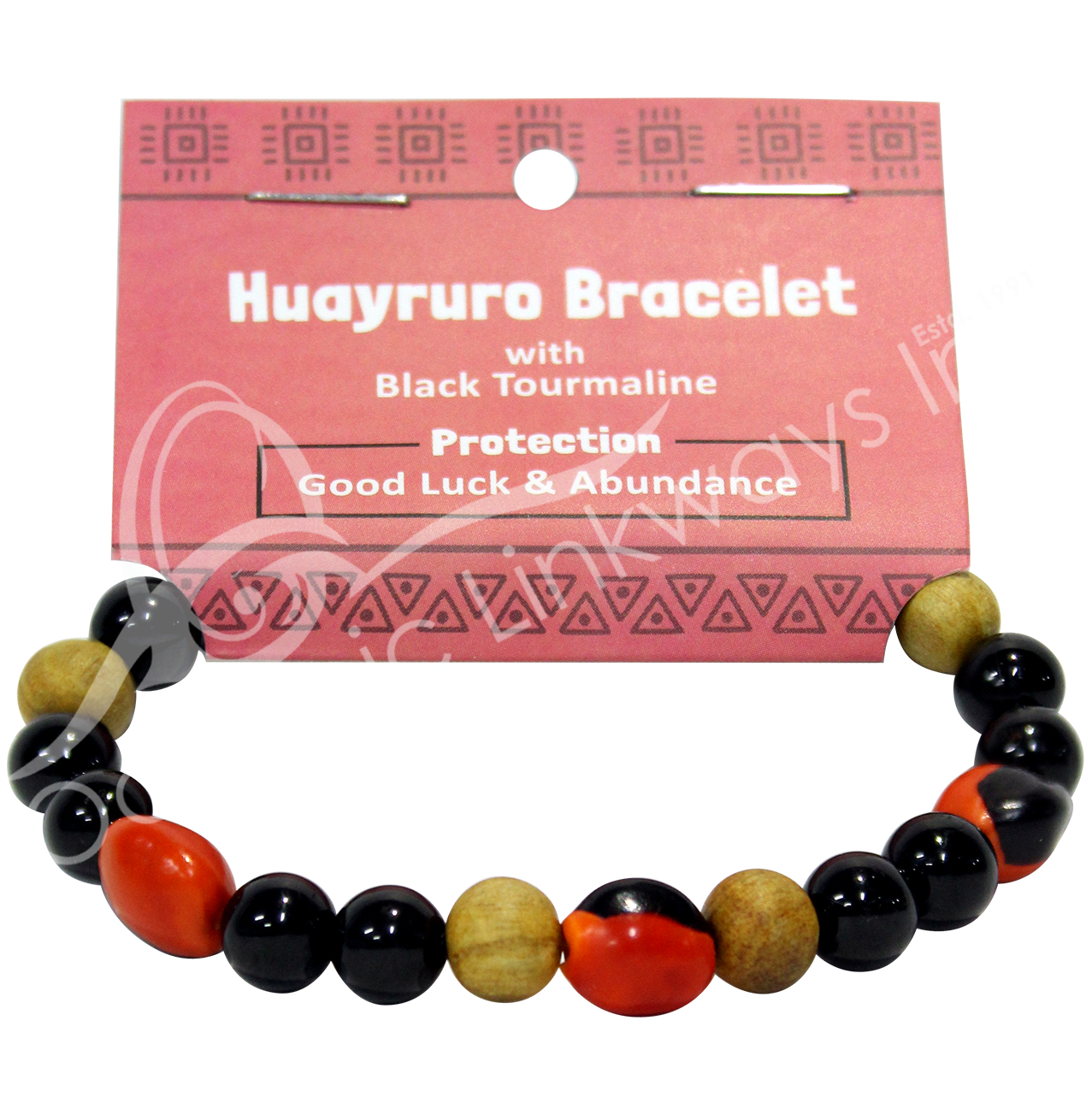 NECKLACE – PALO SANTO DISC ENGRAVED PENTACLE WITH BLACK TOURMALINE (PK 3) 6-12″L