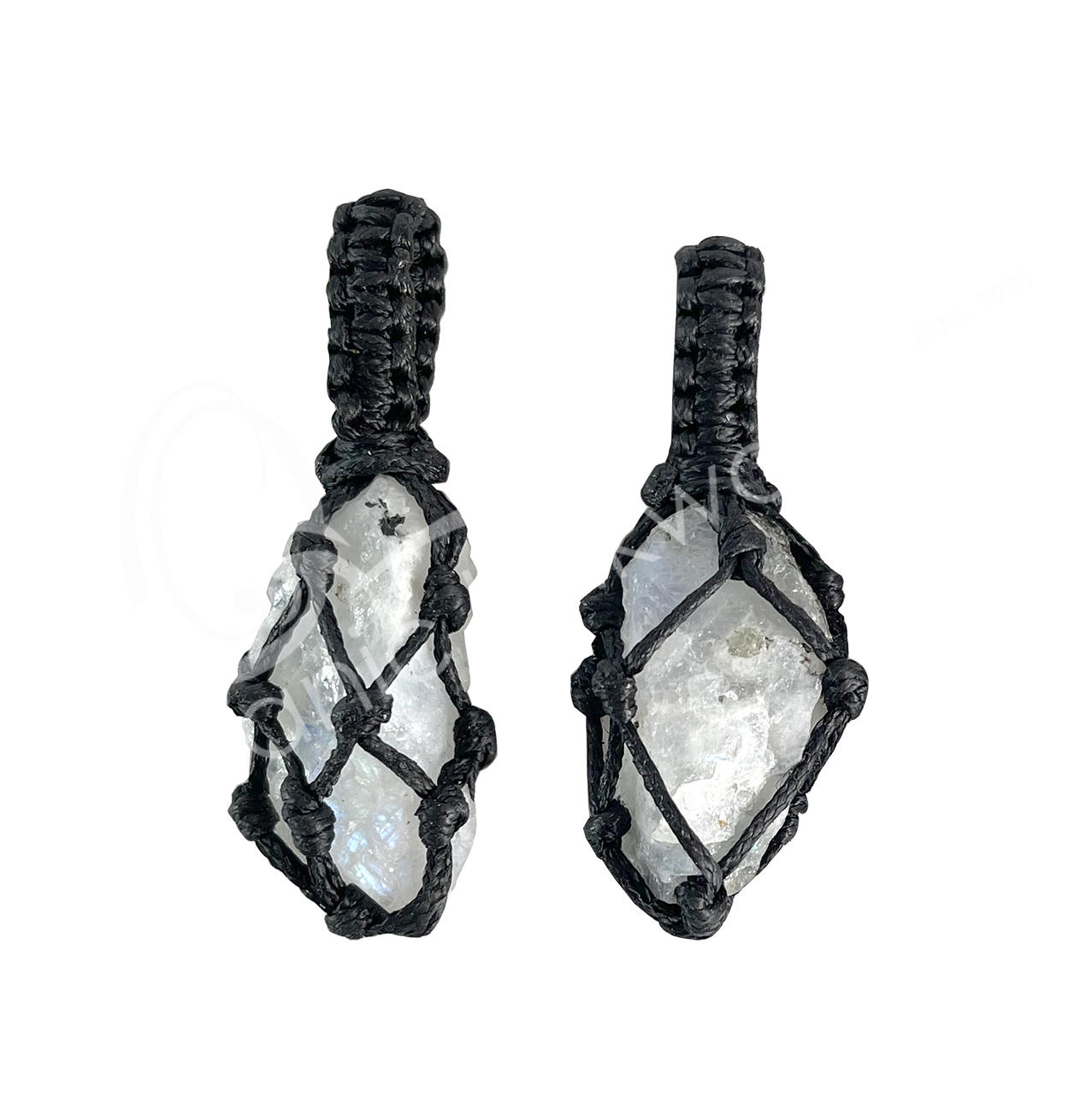 PENDANT – THREAD CAGE MOONSTONE, RAINBOW ROUGH 1.5-2″