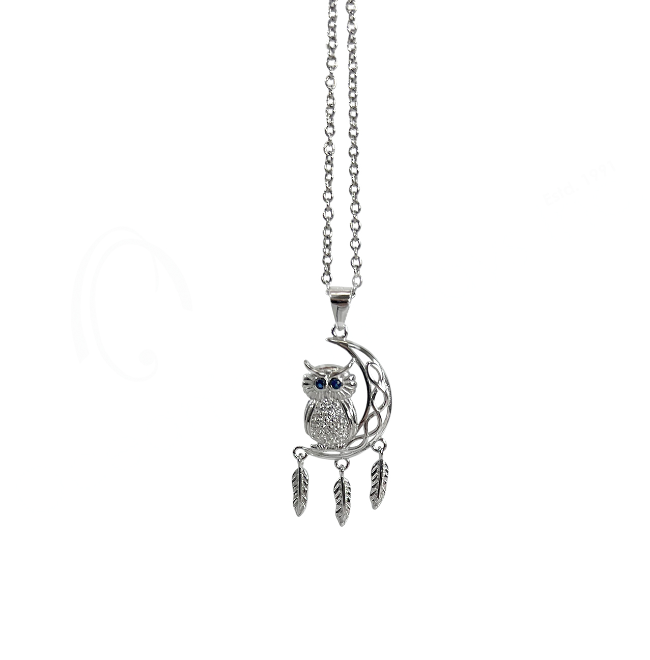 STERLING SILVER – PENDANT OWL LABRADORITE 0.75″W X 2″L