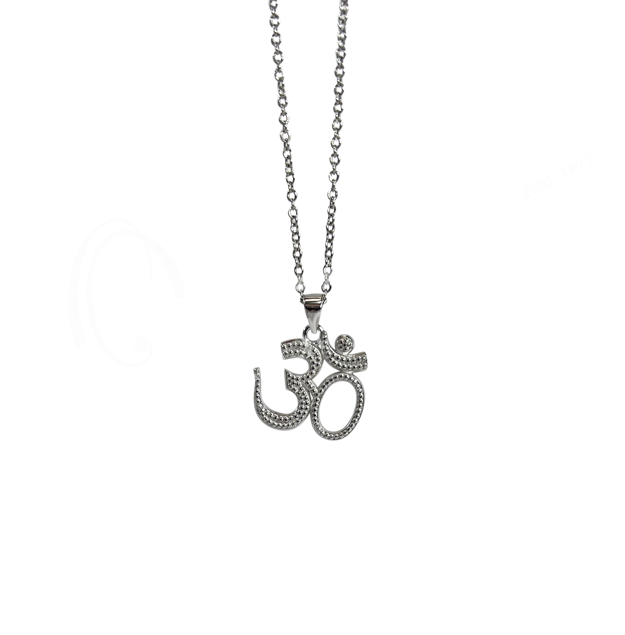 STERLING SILVER – PENDANT OM WITH 2 STONES RAINBOW MOONSTONE 1.25″W X 1.5″H