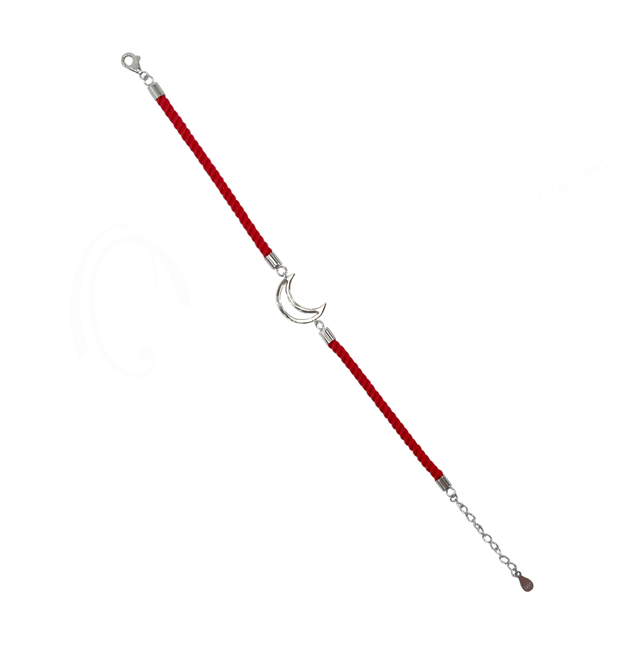STERLING SILVER – BRACELET RED CORD CRESCENT MOON 8″L