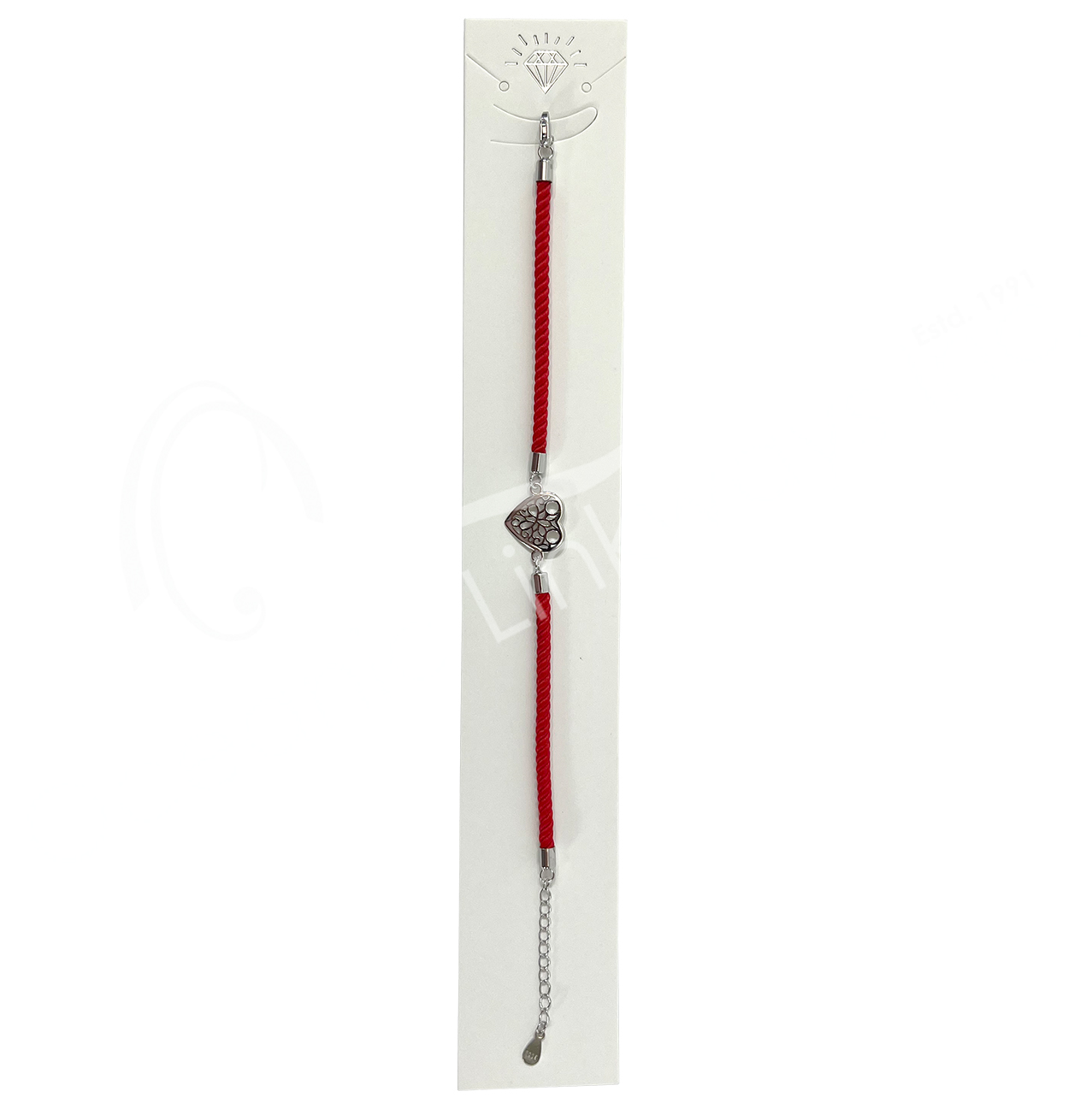 STERLING SILVER – BRACELET RED CORD HEART 8″L