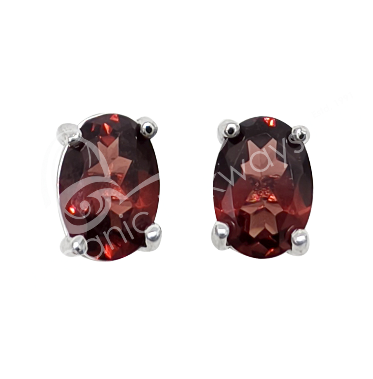 STERLING SILVER – EARRING STUDS GARNET FACETED 7 MM L