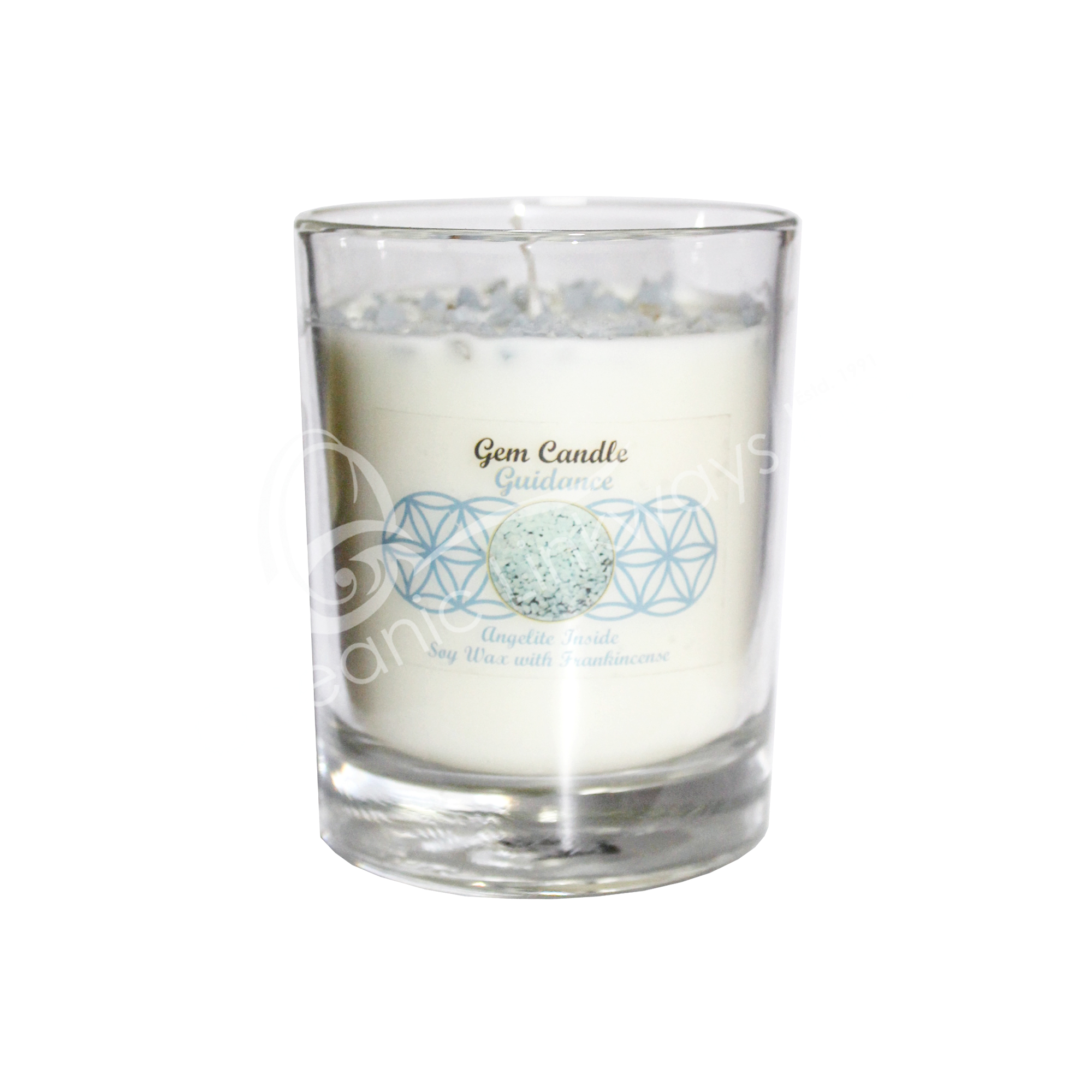CANDLE – SOY WAX FRANKINCENSE WITH ANGELITE/GUIDANCE 4″H X 3.25″DIA.