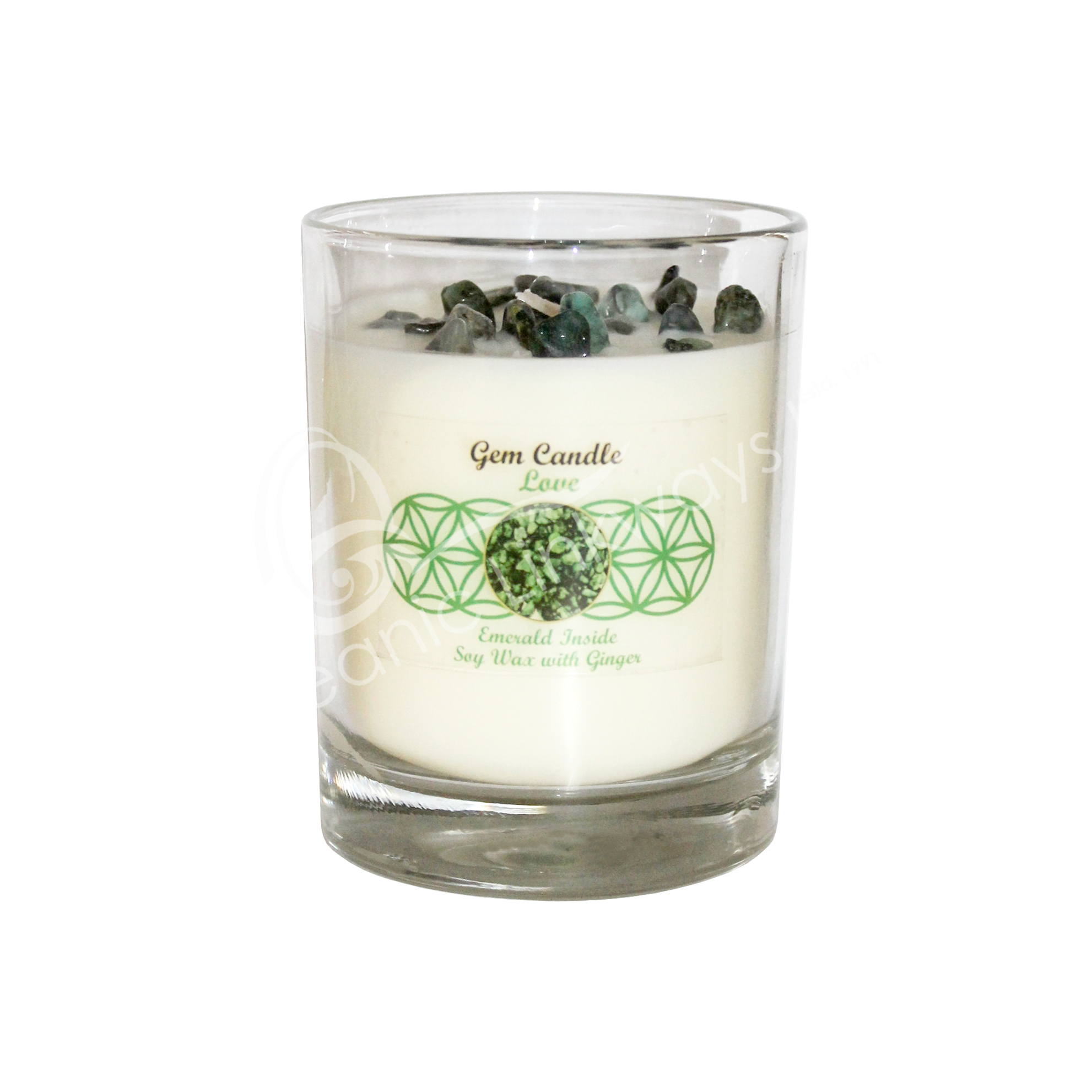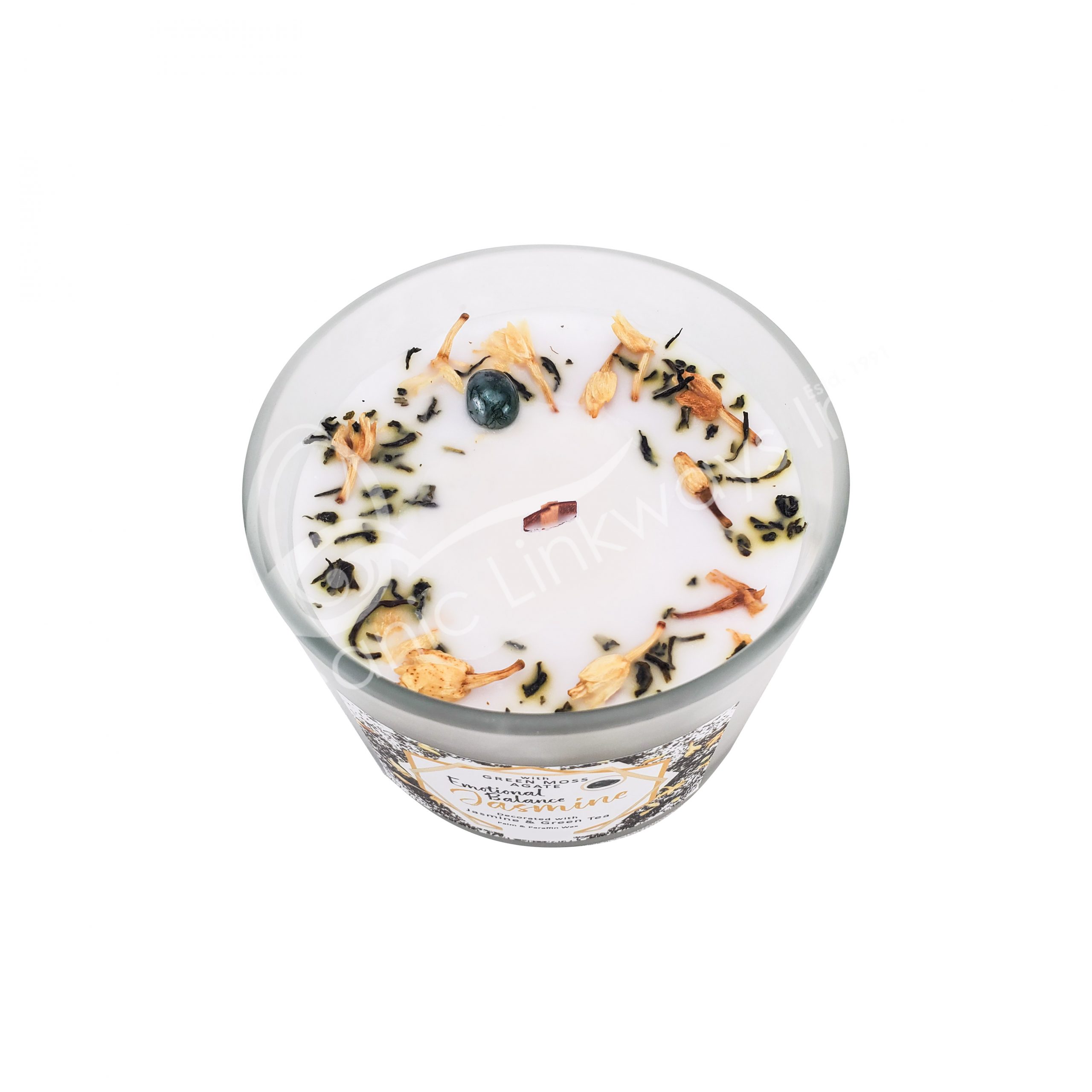 CANDLE – AROMATHERAPY JASMINE/EMOTIONAL BALANCE WITH GREEN MOSS AGATE 3″H X 3.25″DIA.