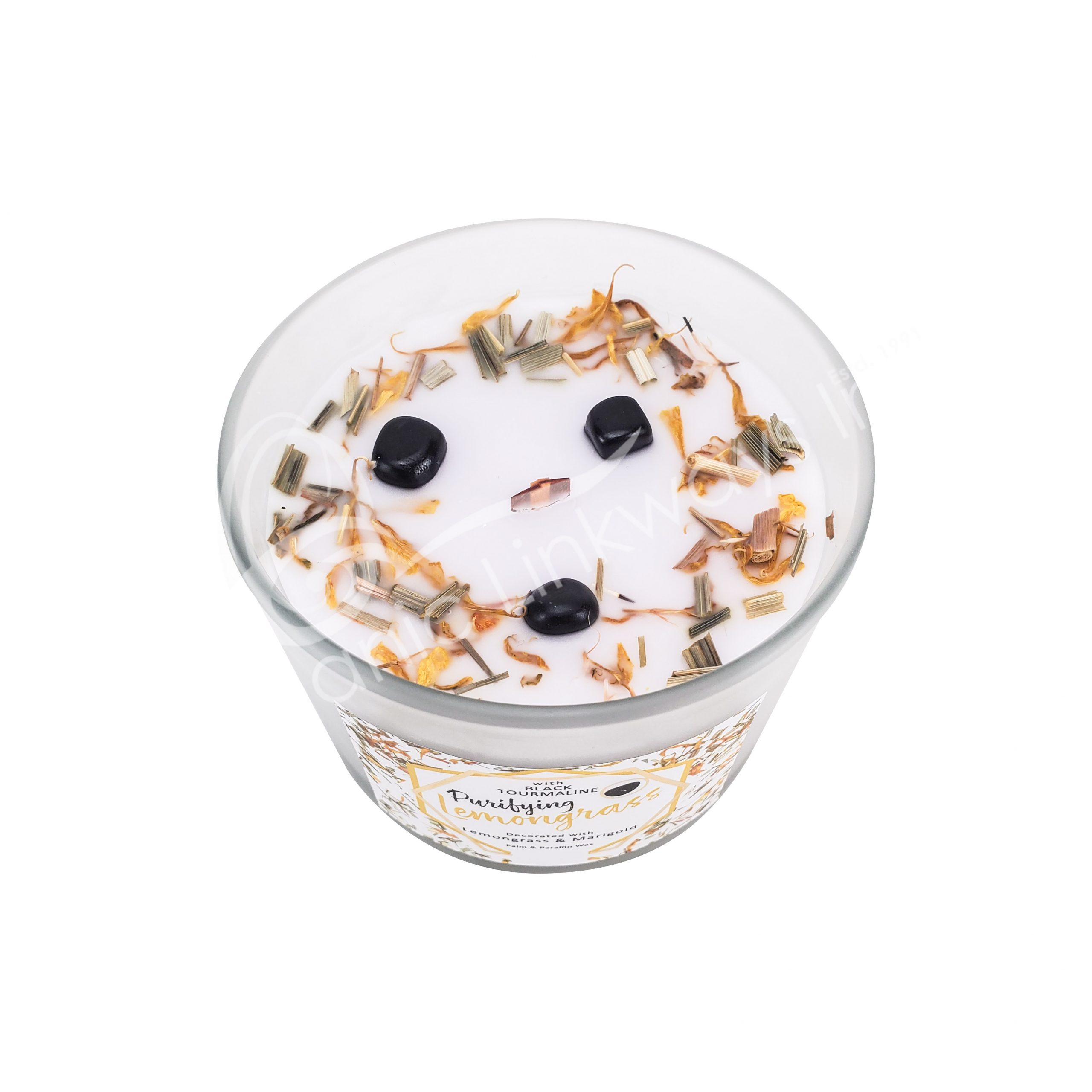 CANDLE – AROMATHERAPY LEMONGRASS/PURIFYING WITH BLACK TOURMALINE 3″H X 3.25″DIA.