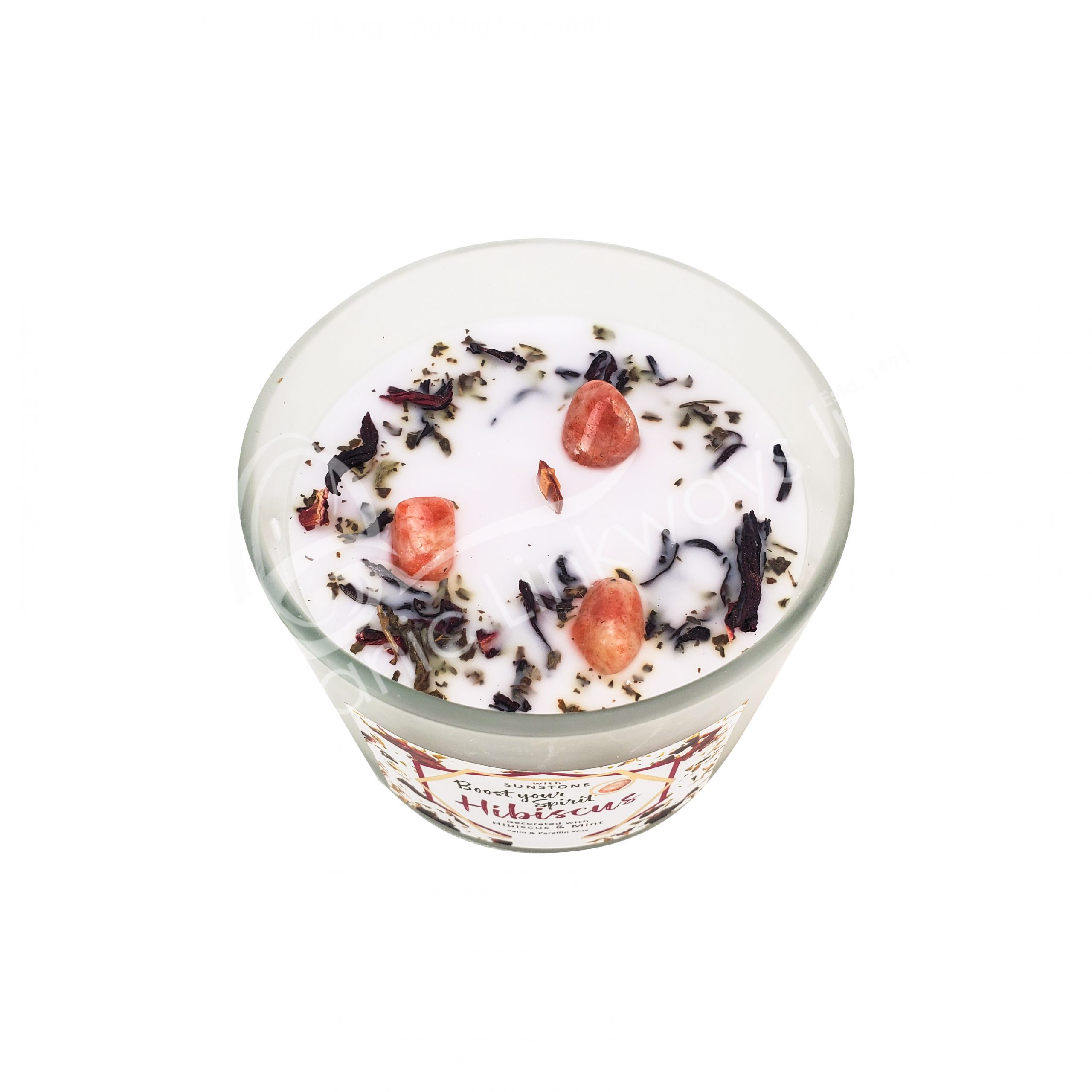 CANDLE – AROMATHERAPY HIBISCUS/BOOST YOUR SPIRIT WITH SUNSTONE 3″H X 3.25″DIA.