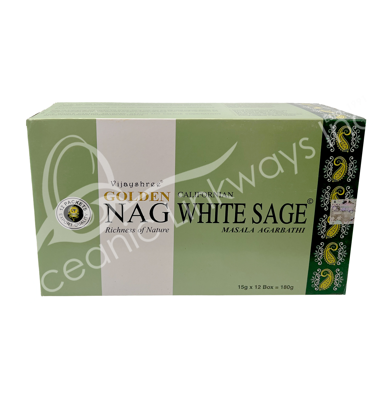 INCENSE – GOLDEN NAG STICKS WHITE SAGE (PK 12) 15 G