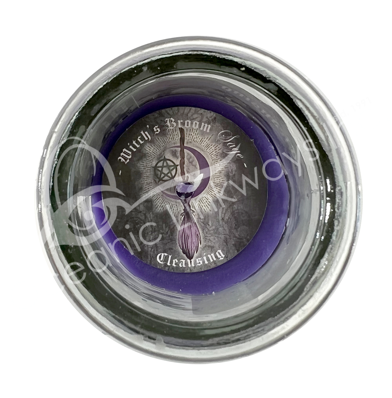 CANDLE – GLASS JAR SAGE/WITCH’S BROOM 8″H X 2.25″DIA.