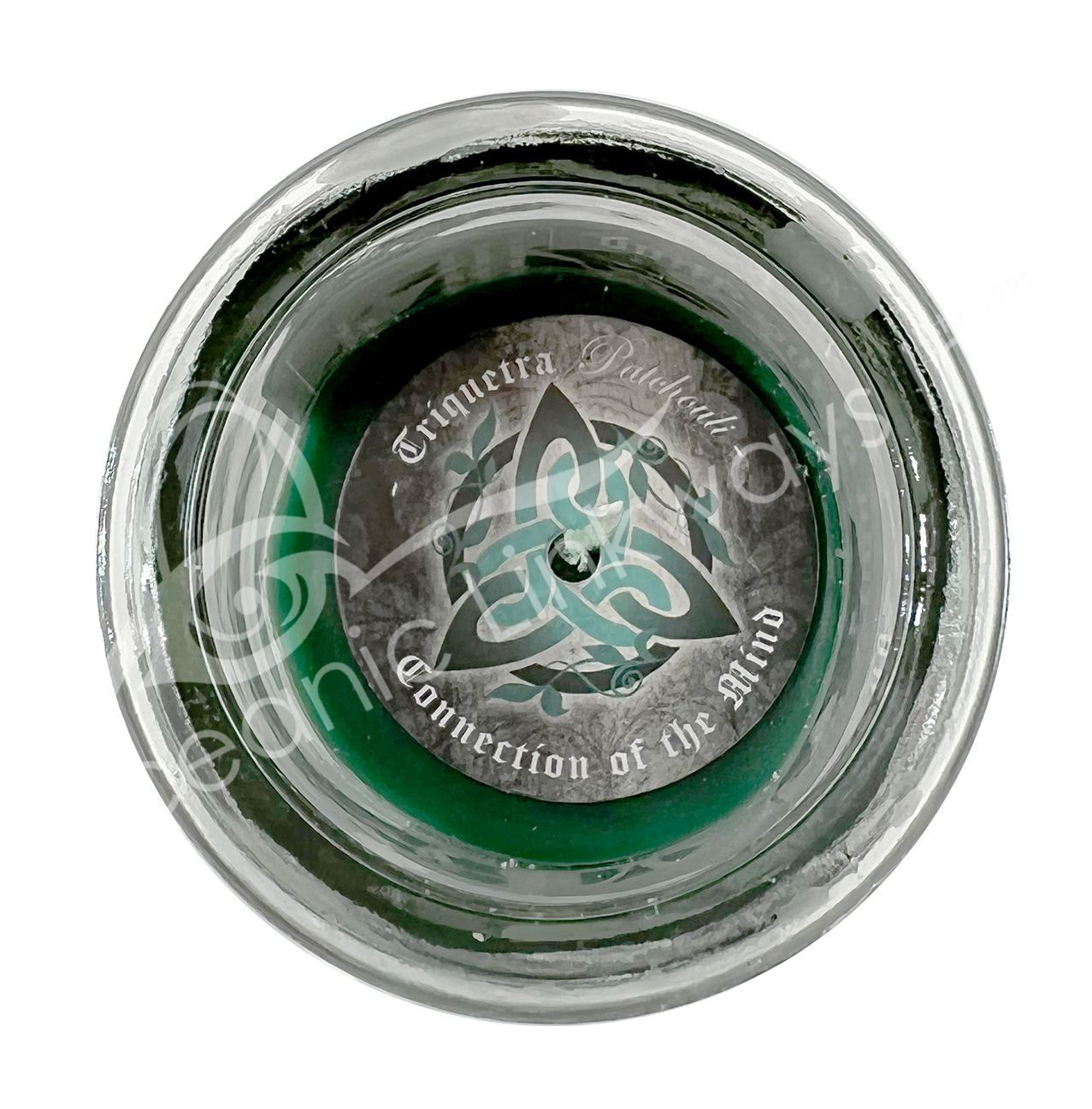 CANDLE – GLASS JAR PATCHOULI/TRIQUETRA 8″H X 2.25″DIA.
