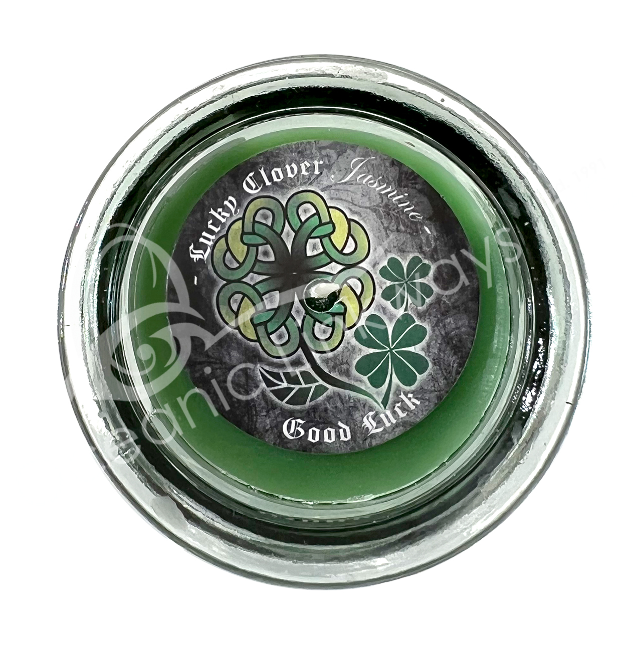 CANDLE – GLASS JAR JASMINE/LUCKY CLOVER 8″H X 2.25″DIA.