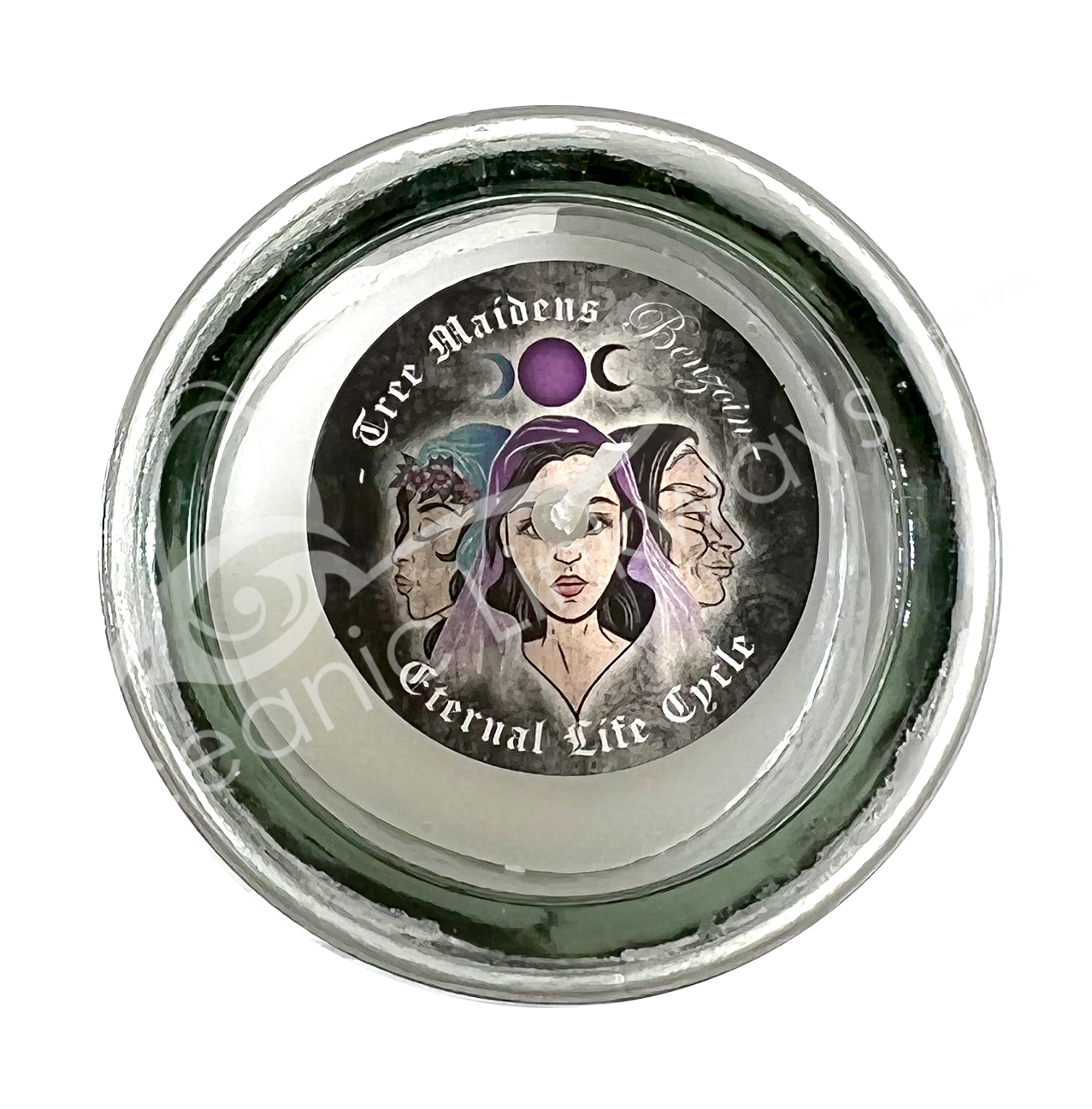 CANDLE – GLASS JAR BENZOIN/THREE MAIDENS 8″H X 2.25″DIA.