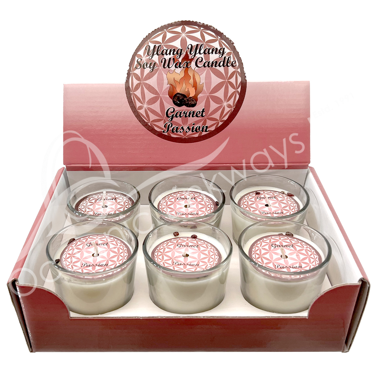 CANDLE VOTIVE – SOY WAX YLANG YLANG WITH GARNET/PASSION (PK 6) 2.25-2.5″H X 2.25″DIA.