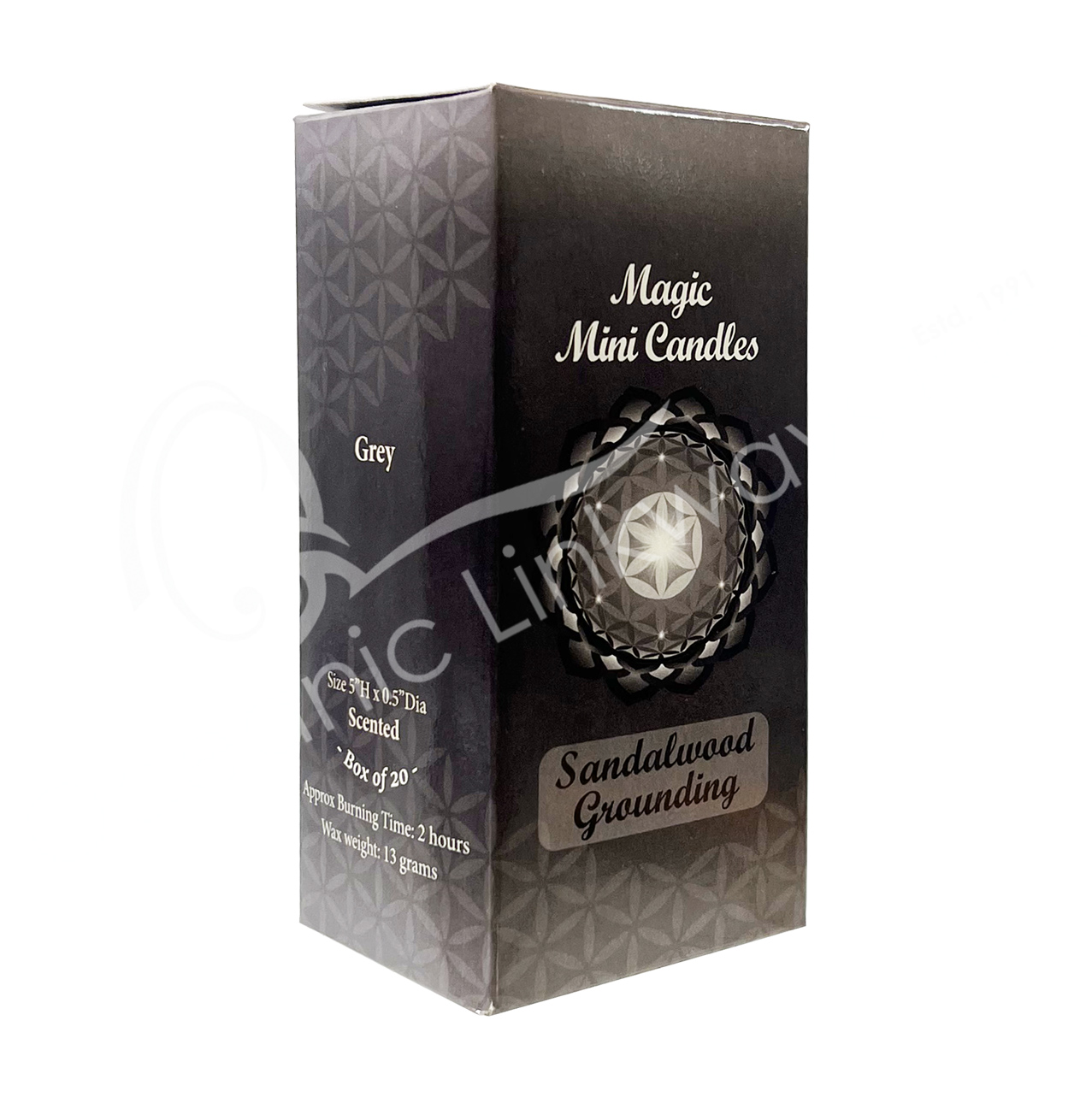 (CLOSE OUT) CANDLE – MINI SCENTED GRAY SANDALWOOD/GROUNDING (PK 20) 4.75-5″H