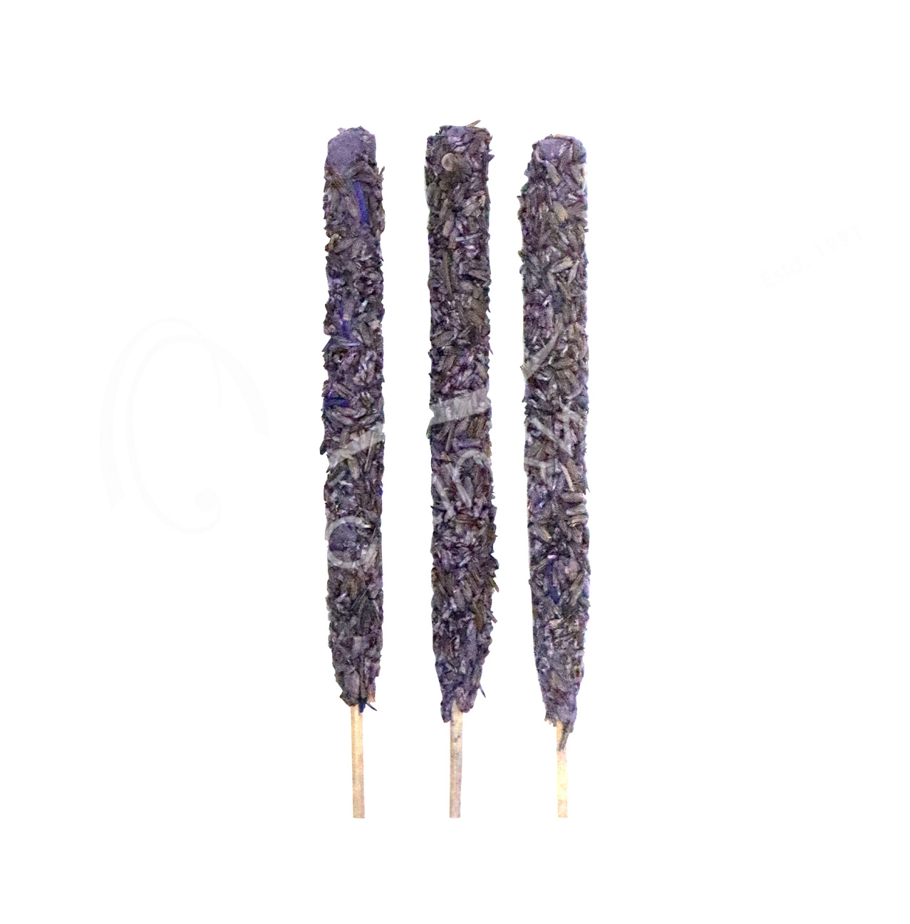 INCENSE – HERBAL RESIN ON PALO SANTO STICKS LAVENDER (PK 2) 4-4.25″