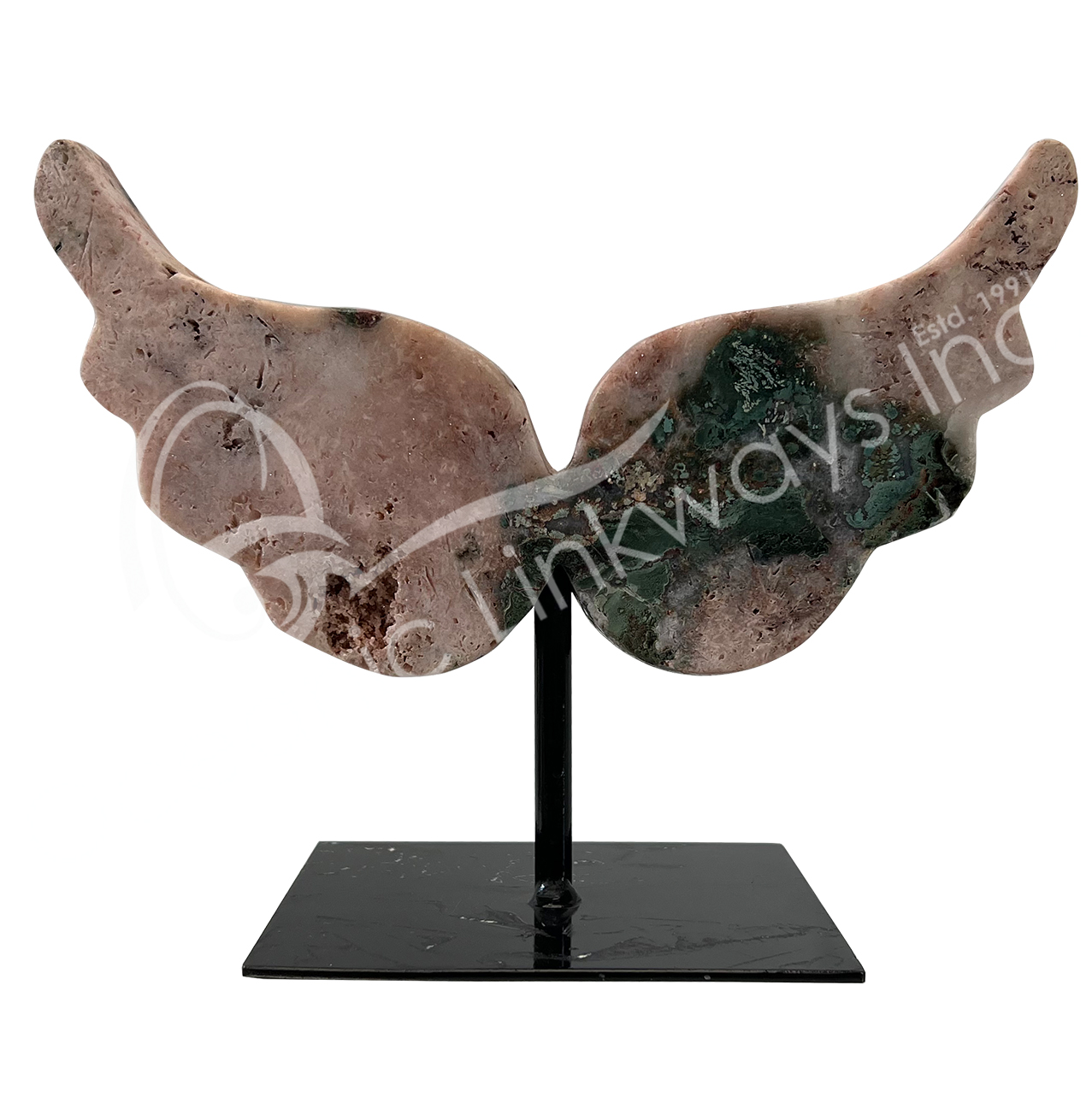 CARVING – ANGEL WINGS AMETHYST, PINK ON METAL STAND 7-9″H