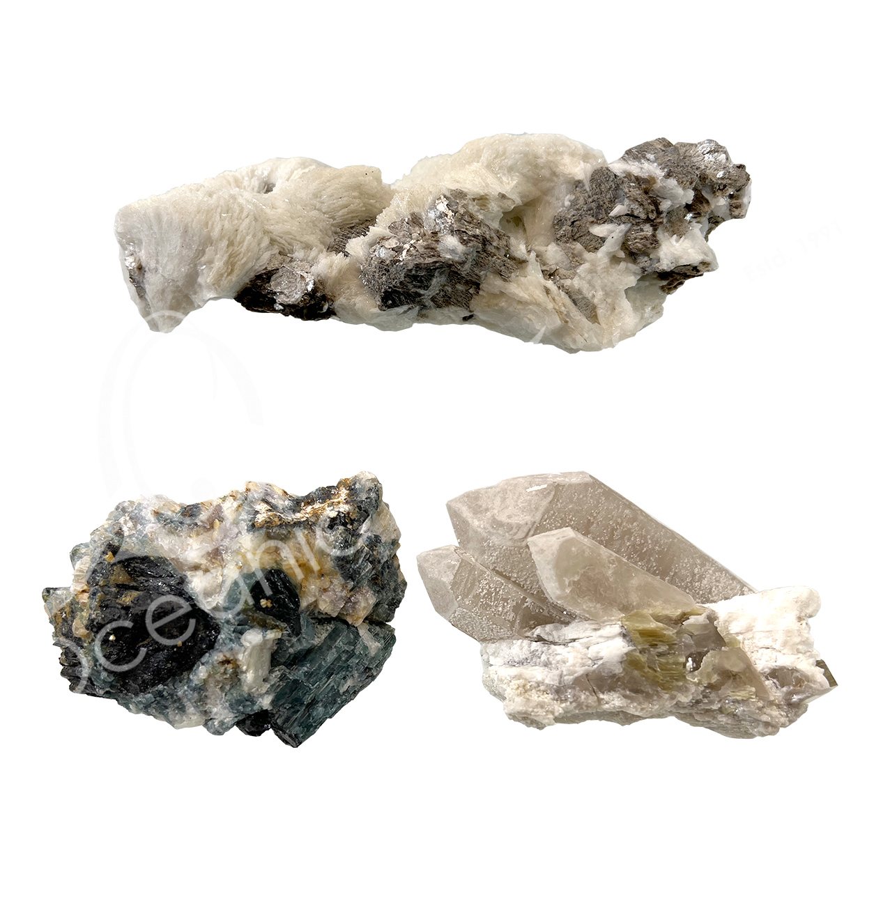 SPECIMEN – ALBITE WITH TOURMALINE, SMOKY QUARTZ & LEPIDOLITE 3-12″