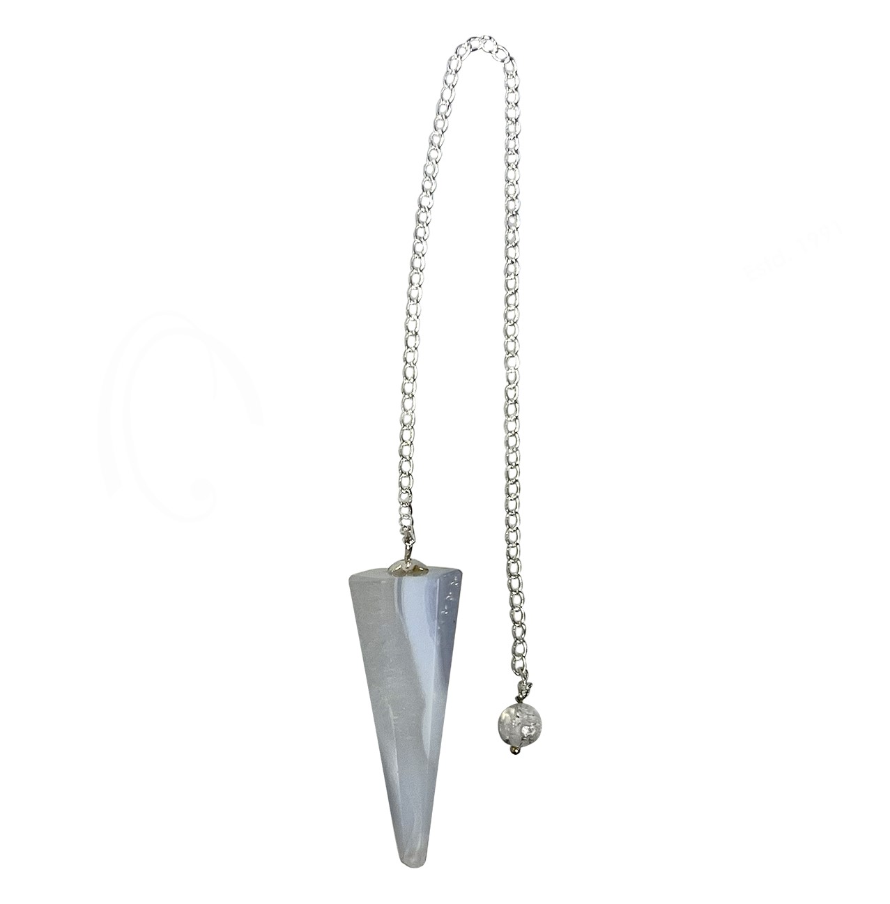 PENDULUM – HEXAGONAL AGATE, BLUE LACE PLAIN CHAIN 9″L