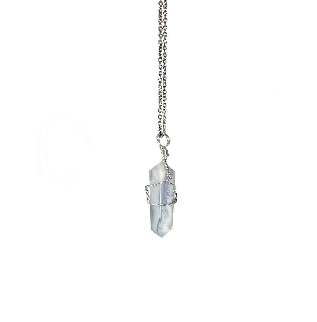 PENDANT – WIRE WRAP AGATE, BLUE LACE (PK 5) 1.5″