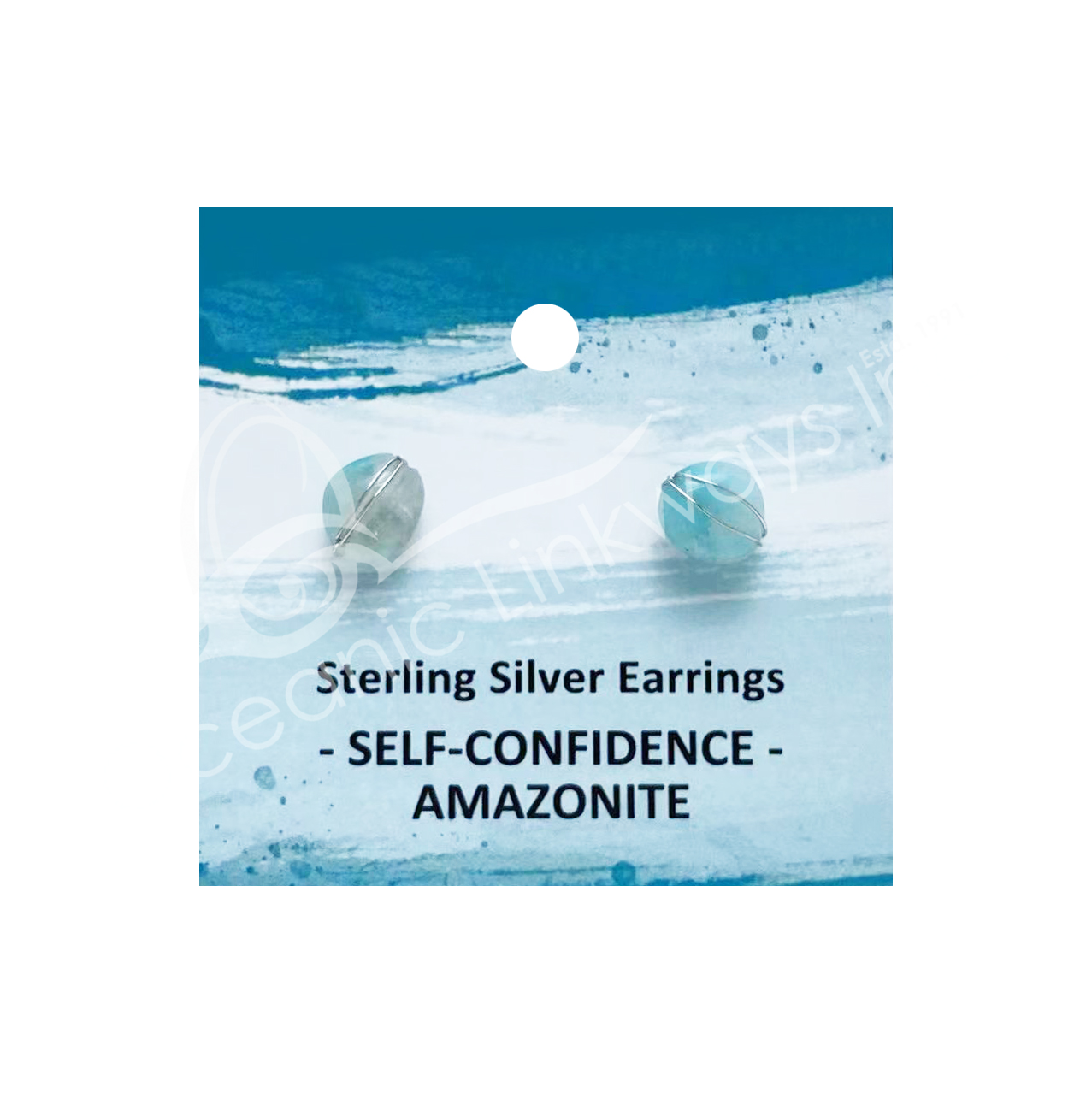 (CLOSE OUT) STERLING SILVER – EARRING STUDS AMAZONITE WIRE WRAP 7-8 MM