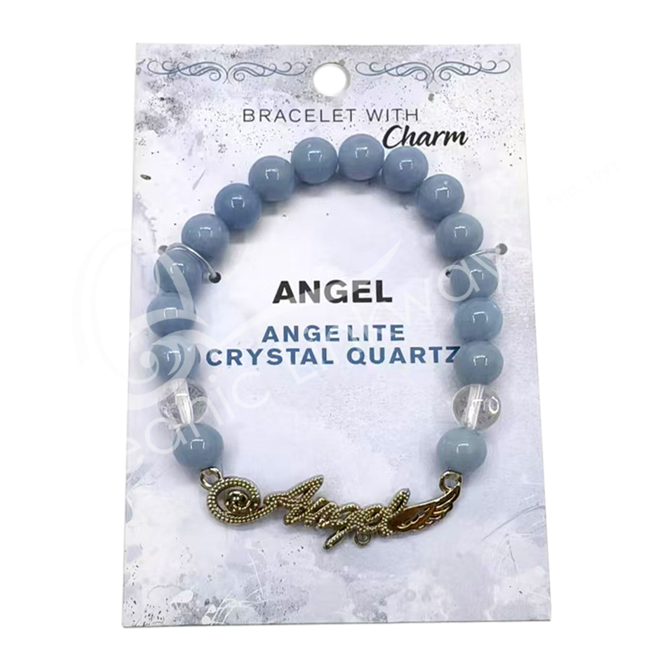 BRACELET – CRYSTAL QUARTZ & ANGELITE ANGEL WING (8-8.5 MM) 7.15-7.25″