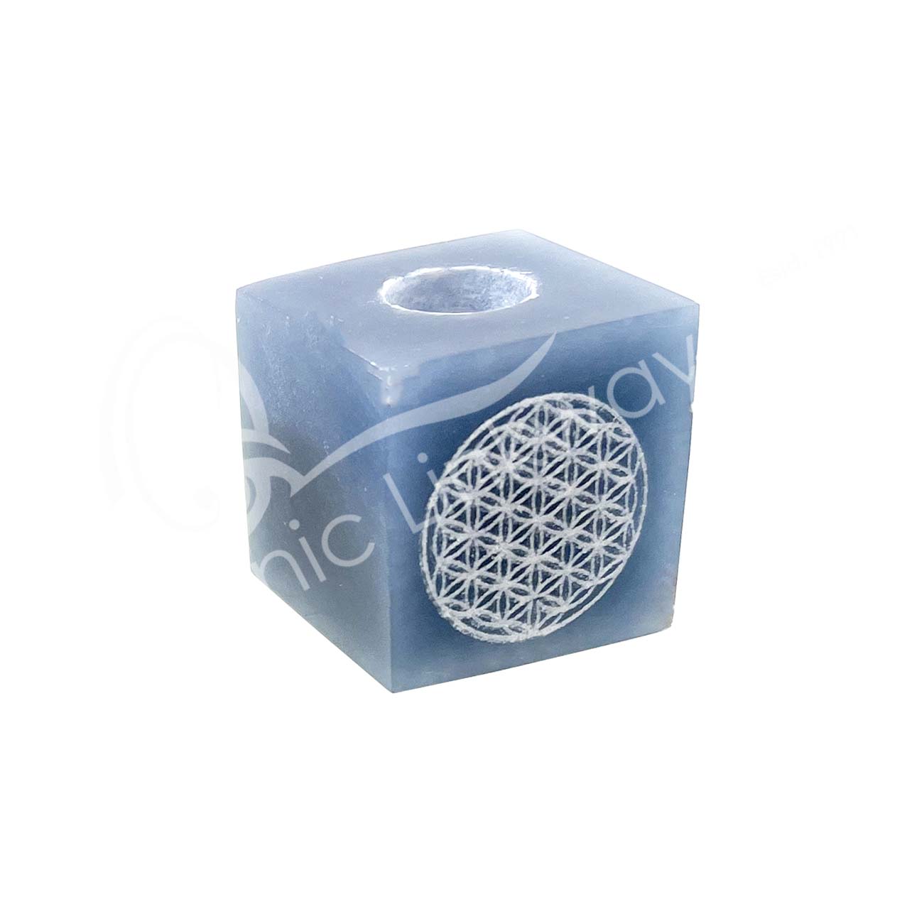 MINI CANDLE HOLDER – ANGELITE CUBE FLOWER OF LIFE 1.5″