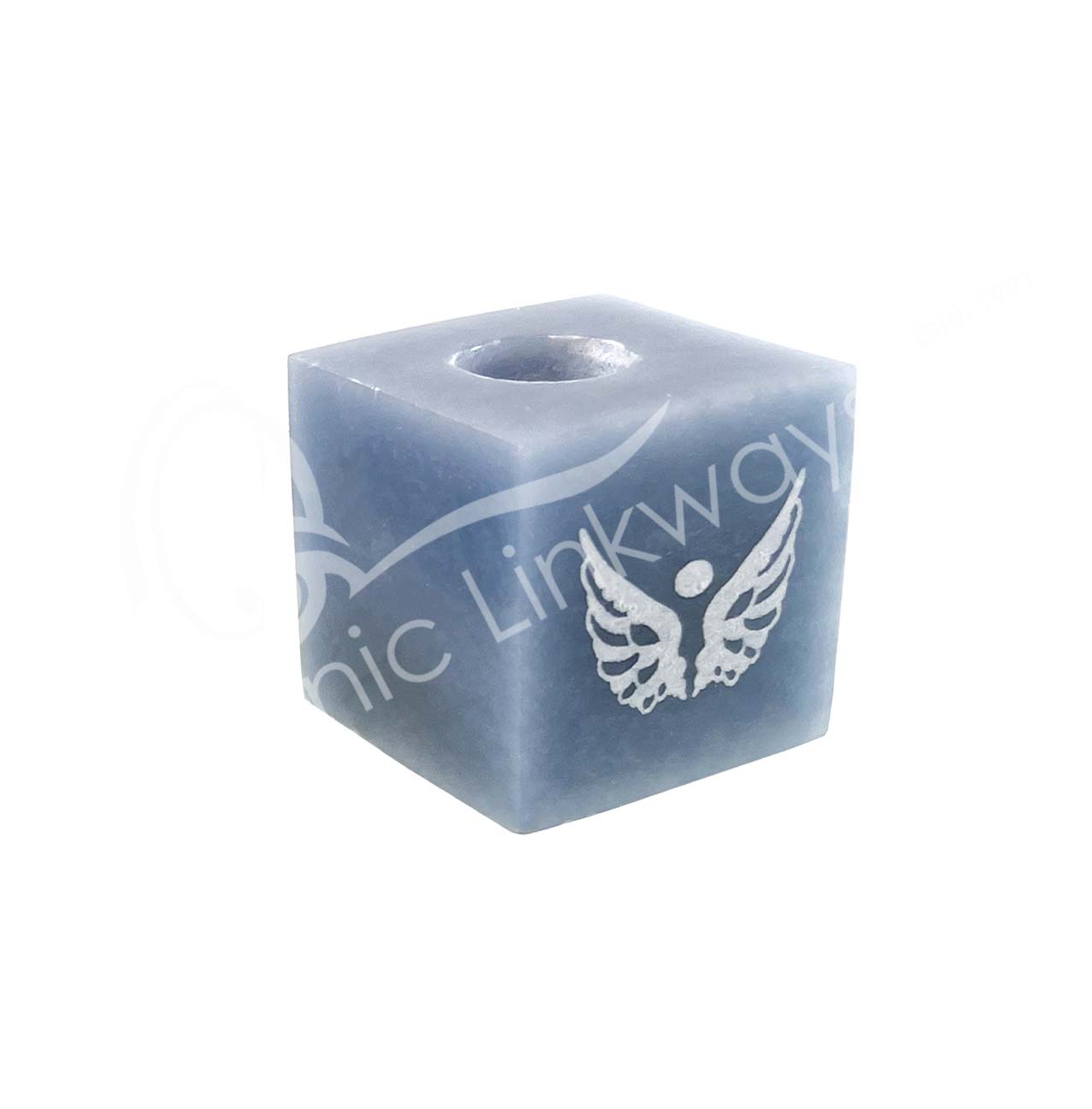 MINI CANDLE HOLDER – ANGELITE CUBE ANGEL WINGS 1.5″